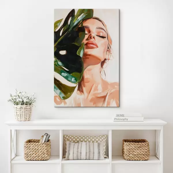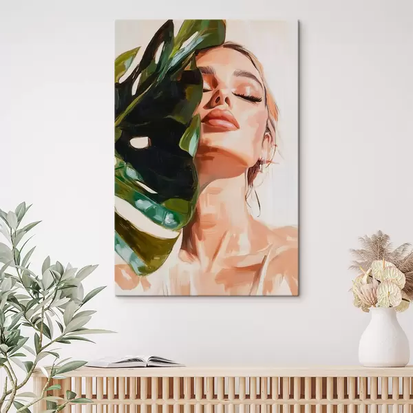 Glezna Sievietes portrets ar monsteras lapu ar otas triepienu imitāciju Nr s42597
