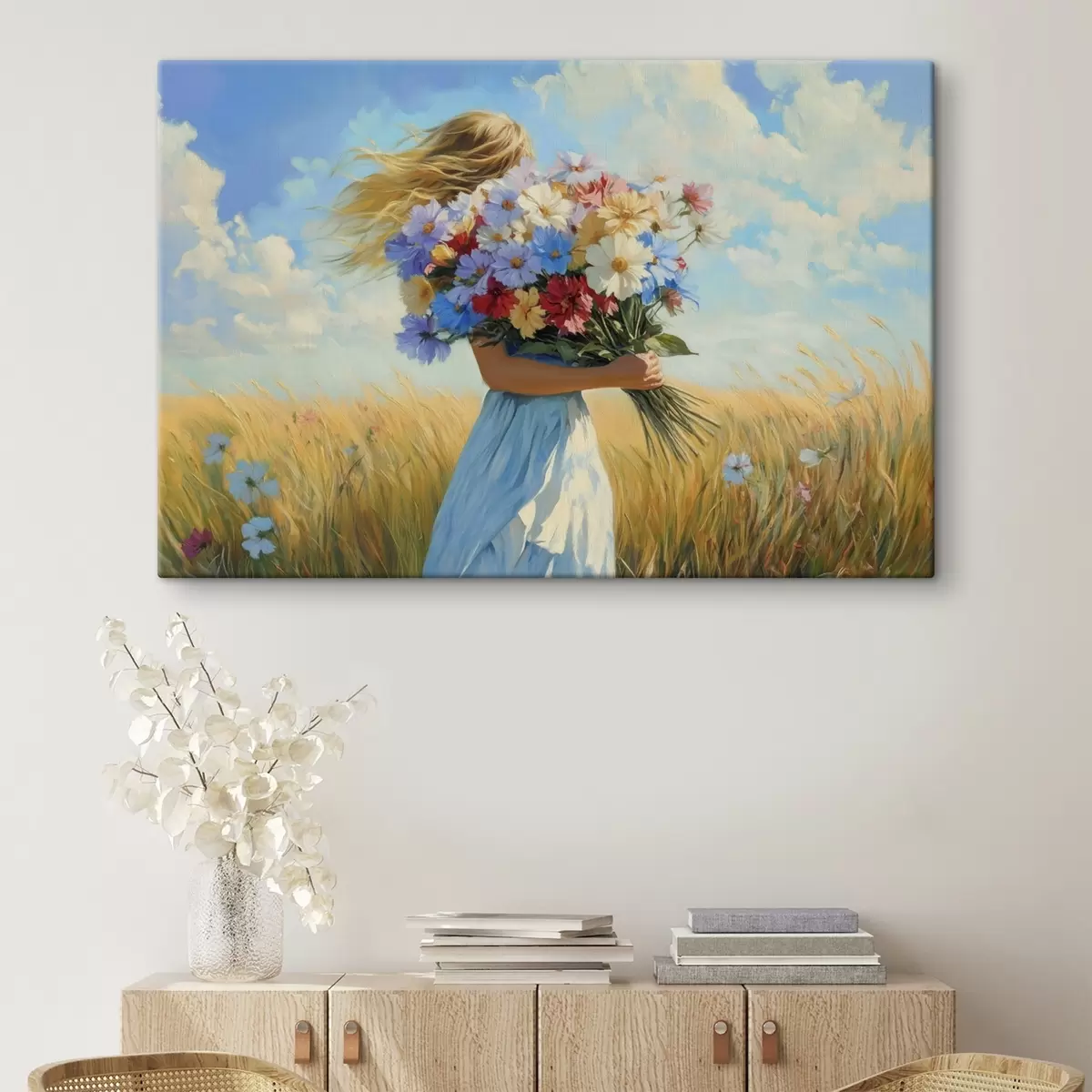 Glezna Meitene ar savvaļas ziediem Nr s42599