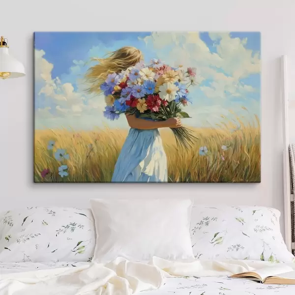 Glezna Meitene ar savvaļas ziediem Nr s42599