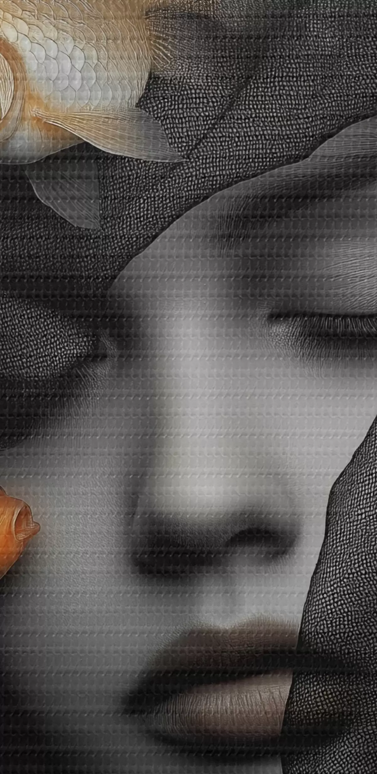 Smalkais diegu pinums uz šī audekla atgādina profesionālu mākslinieku audeklu virsmu.