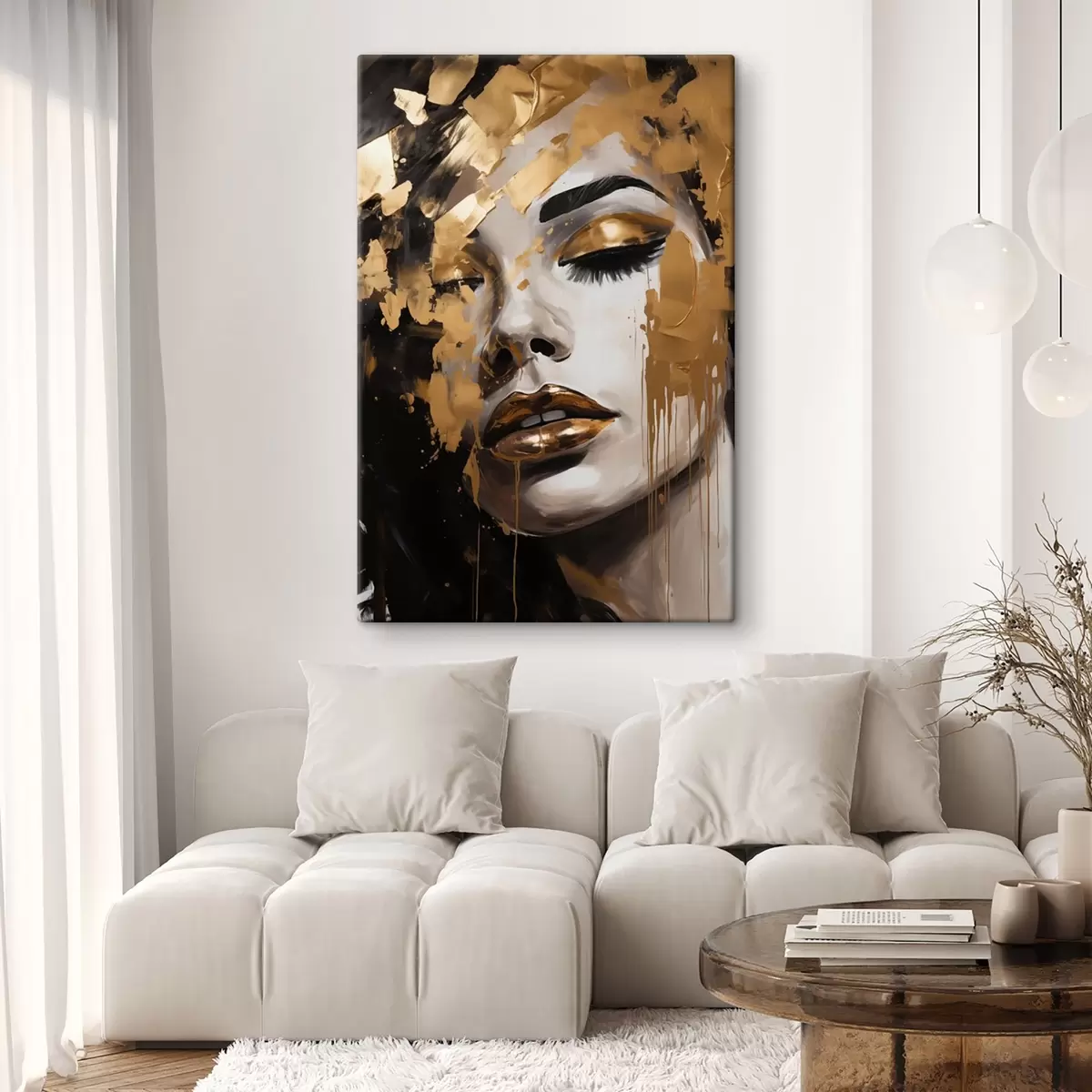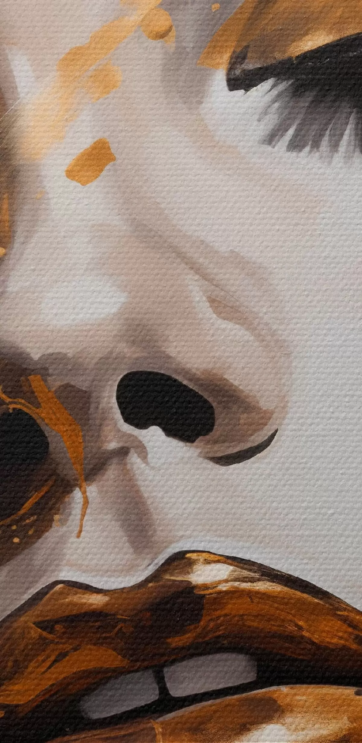 Glezna Sievietes abstrakts portrets ar bagātīgiem otas triepieniem siltos toņos, kas rada spilgtu un dramatisku tēlu. Nr s42619