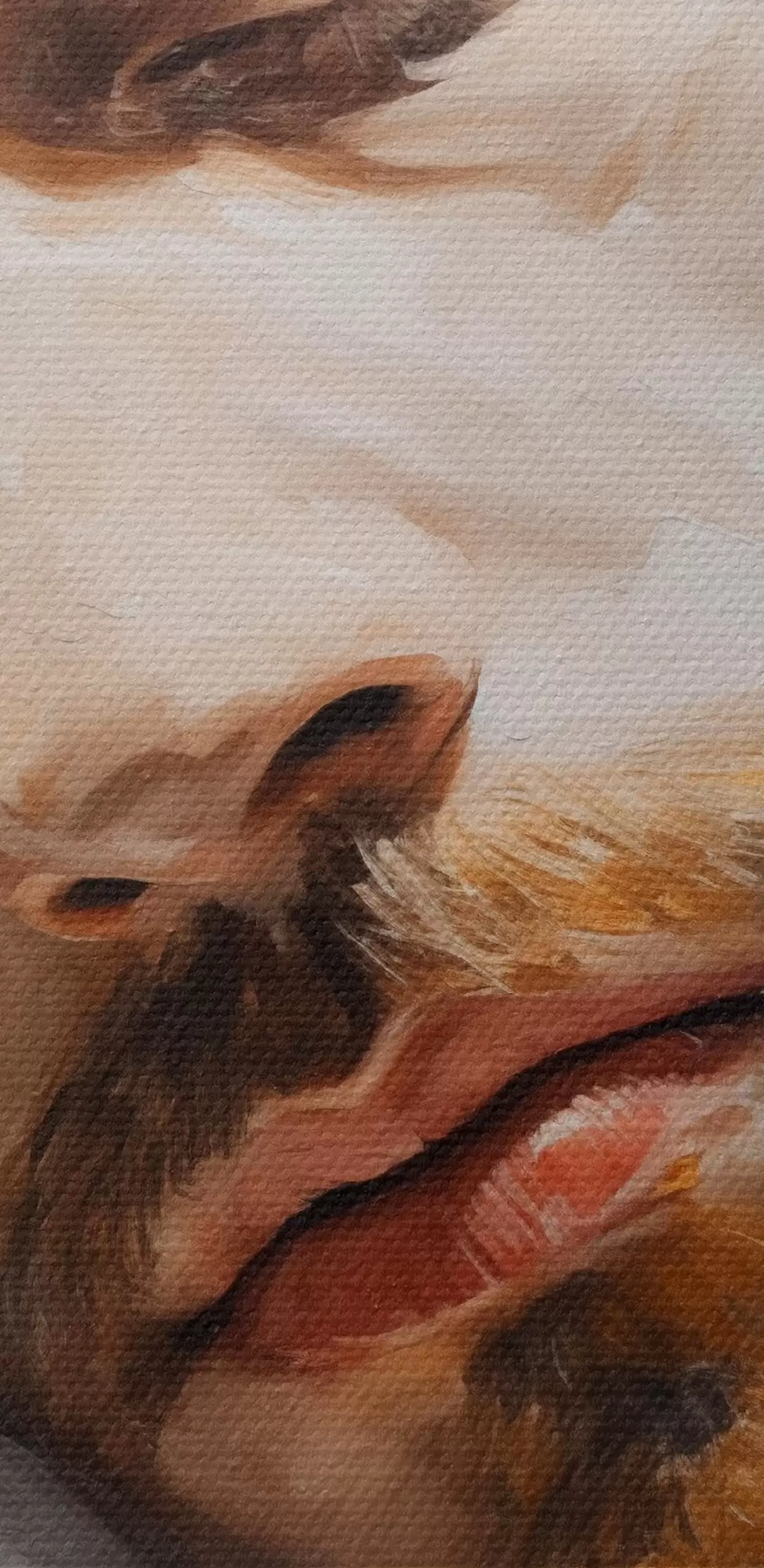 Glezna Abstrakts vīrieša portrets ar aizvērtām acīm, kas veidots maigos, siltos toņos ar gludiem otas triepieniem, kuri rada miera sajūtu. s42621