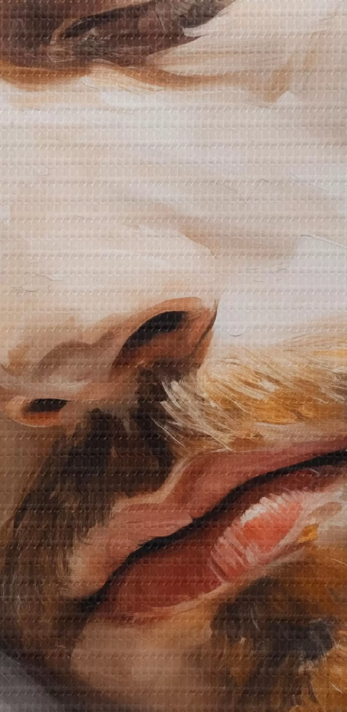 Smalkais diegu pinums uz šī audekla atgādina profesionālu mākslinieku audeklu virsmu.
