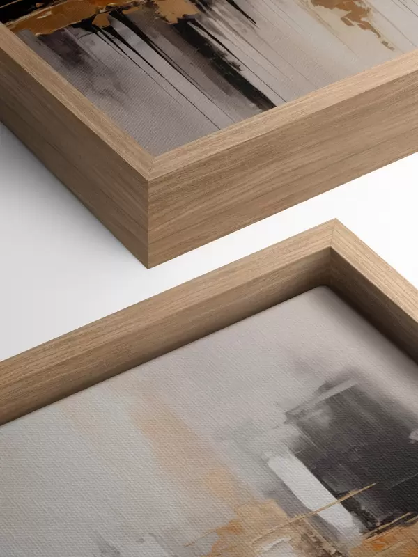 Glezna Abstrakta pilsētas ainava ar ēku atspīdumiem ūdenī, kas veidota neitrālos toņos ar siltu toņu akcentiem. Nr s42628