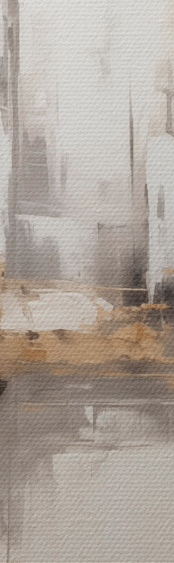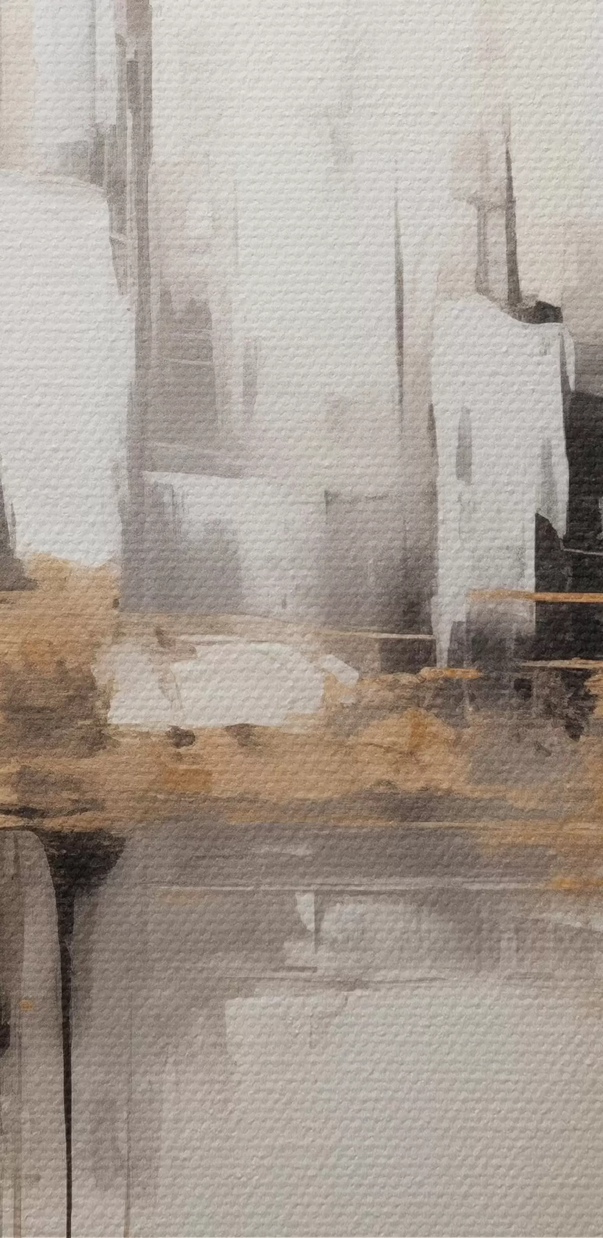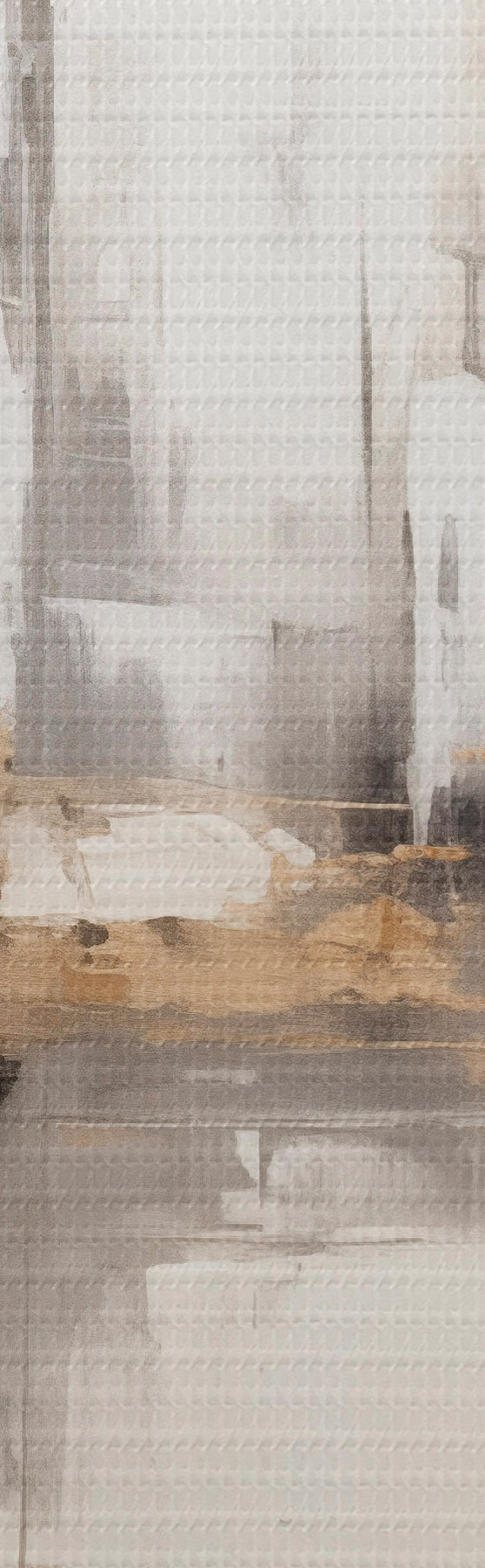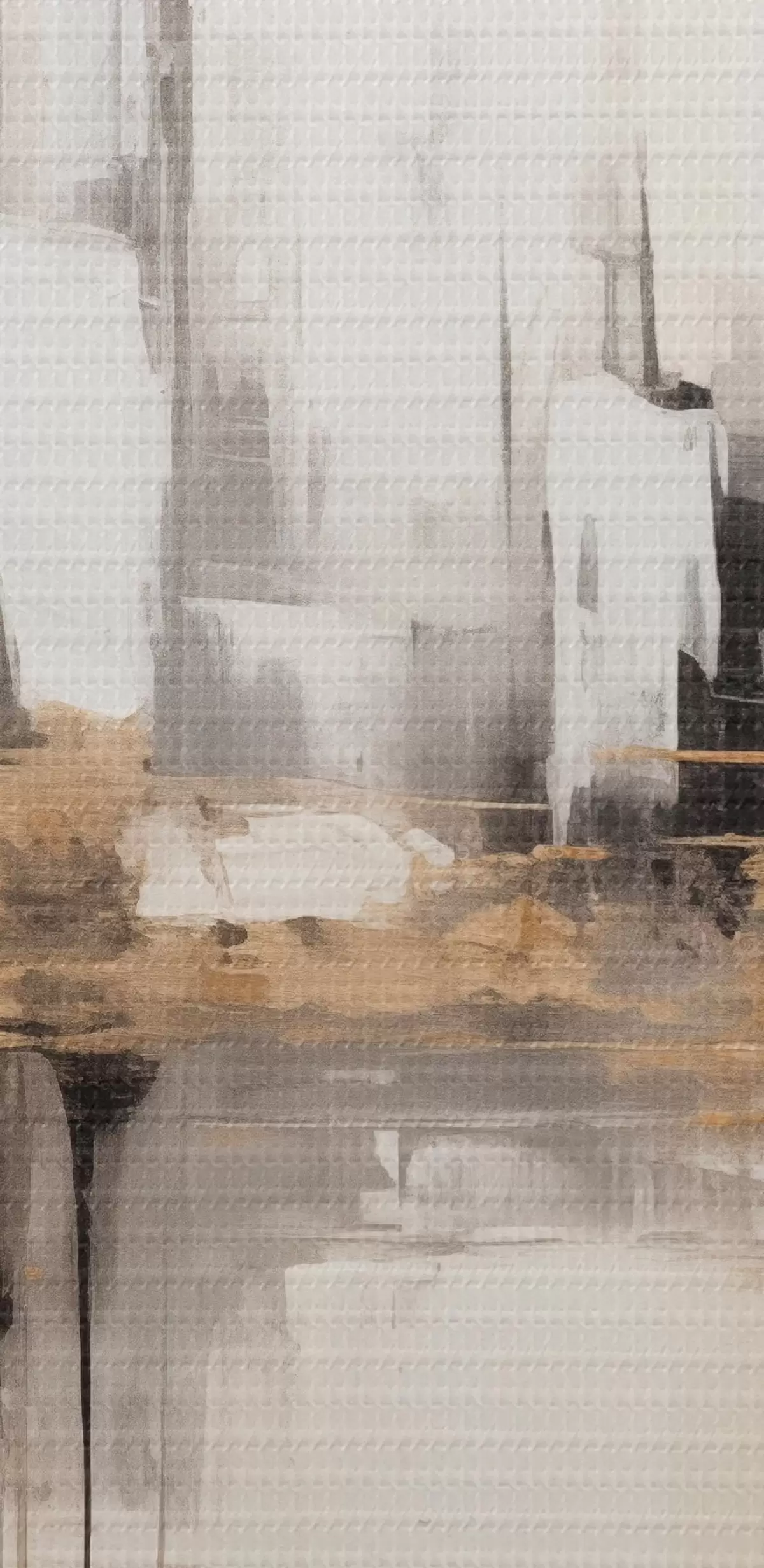 Glezna Abstrakta pilsētas ainava ar ēku atspīdumiem ūdenī, kas veidota neitrālos toņos ar siltu toņu akcentiem. s42628