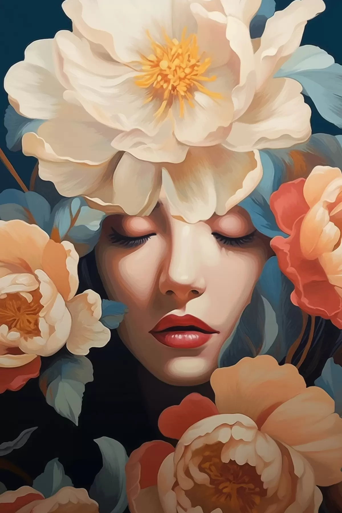 Glezna Sievietes portrets ar ziediem Nr s42659