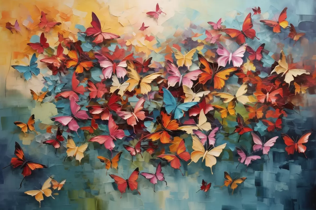 Glezna Spilgts tauriņu masīvs dažādās krāsās, kas imitē eļļas gleznošanu Nr s42728