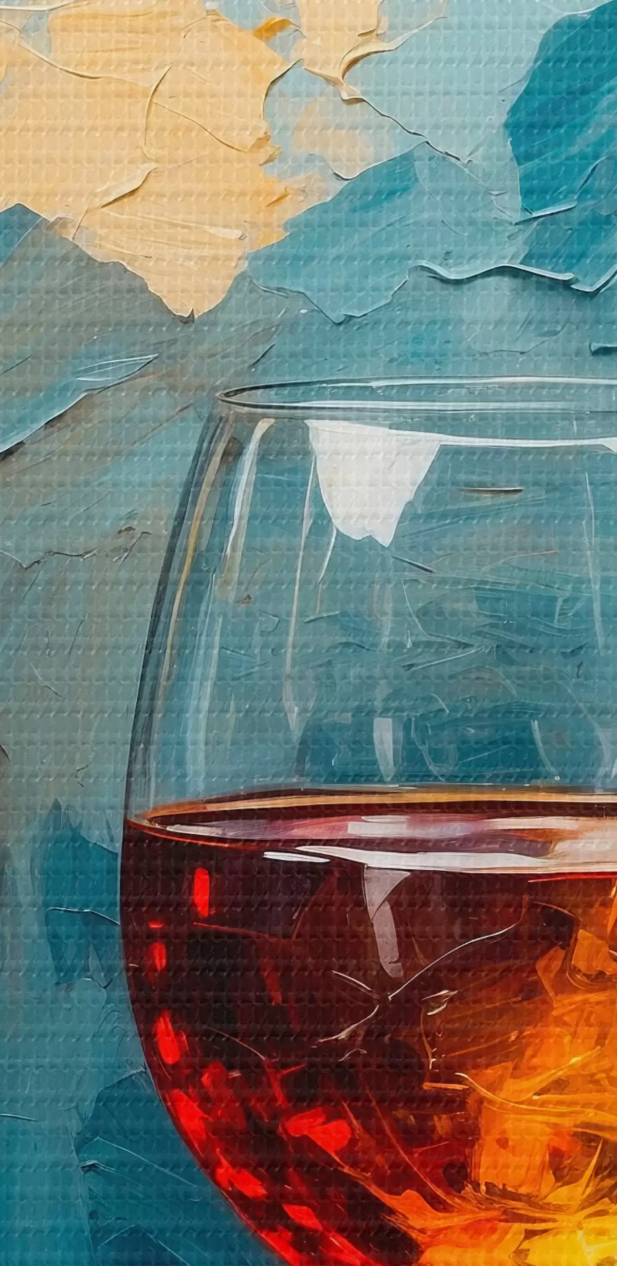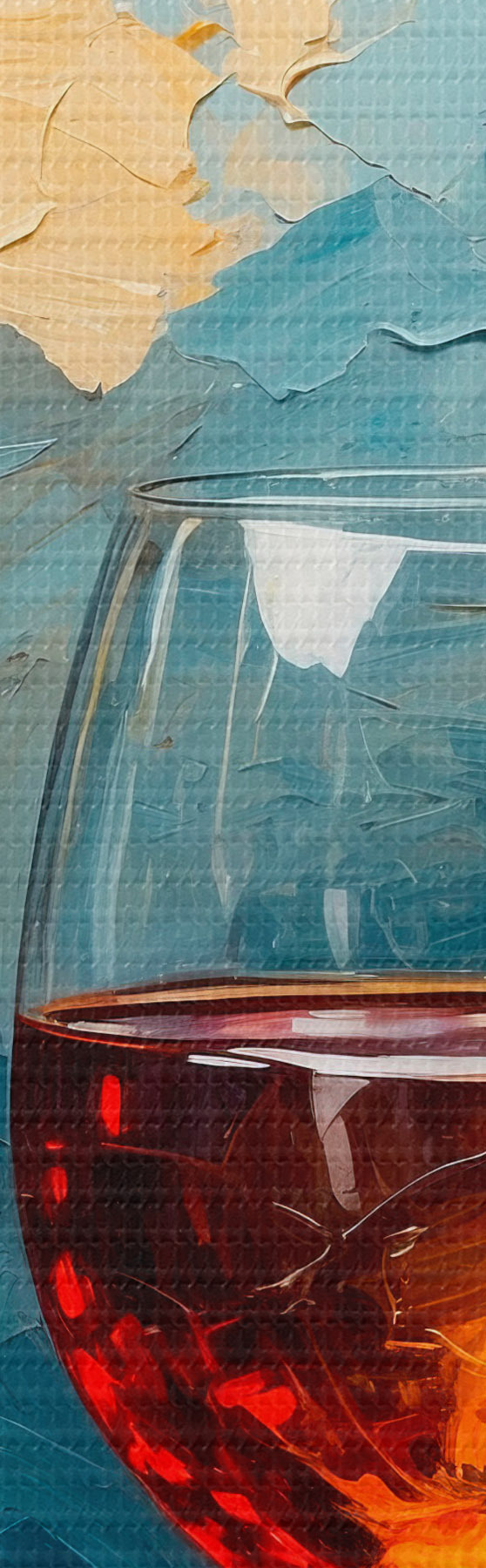 Glezna Vīnogas, glāze un vīna pudele uz abstrakta akrila fona Nr s42772