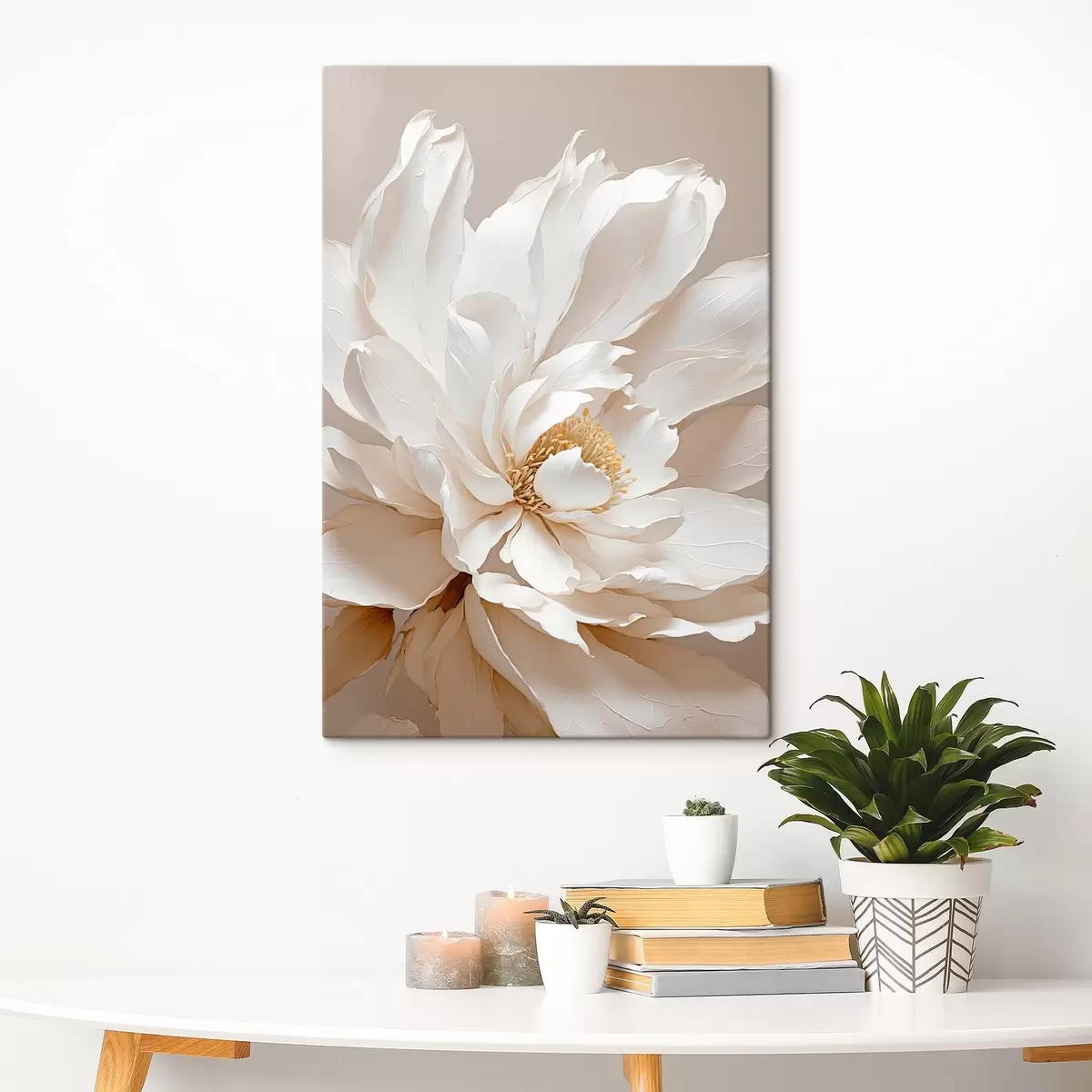 Glezna Balts zieds uz bēša fona s42778