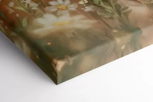 Glezna Gudrs briedis pļavā ar margrietiņu ziediem, eļļas stila zīmējums s42780