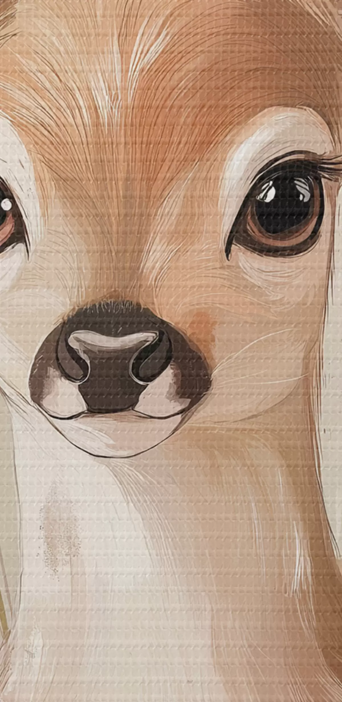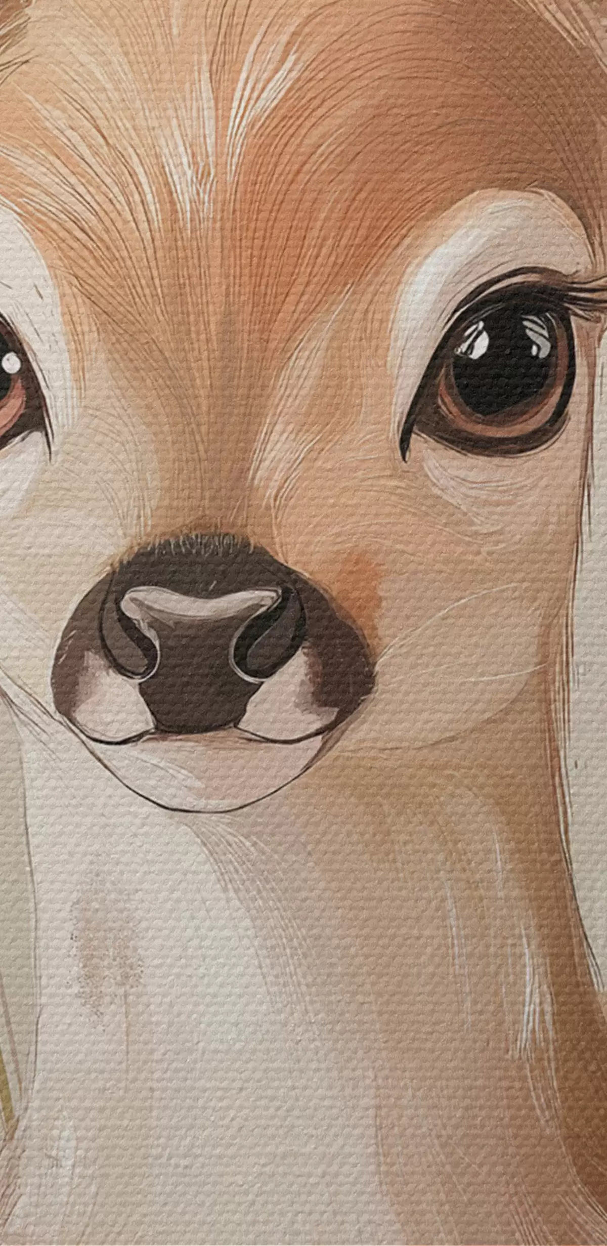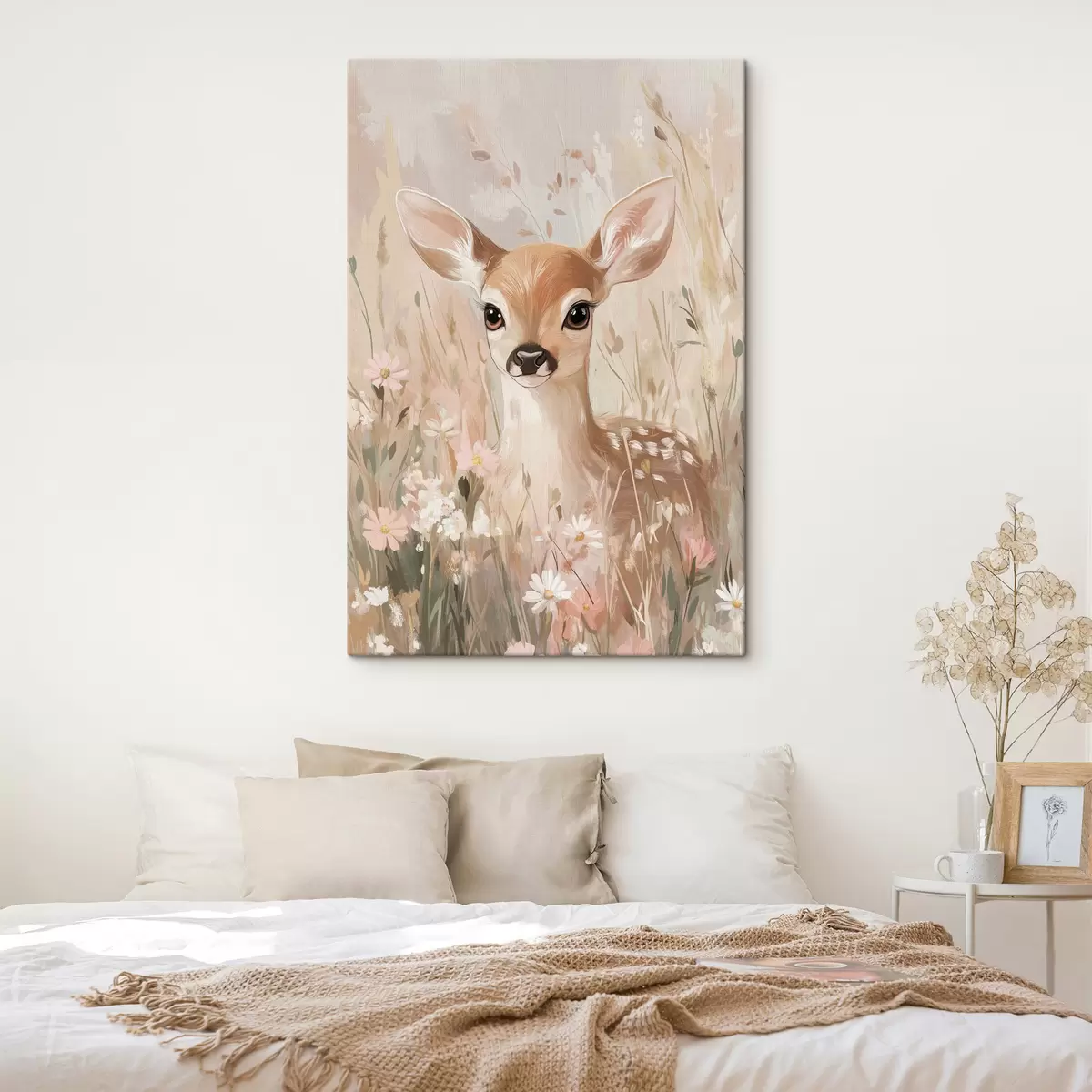 Glezna Mazs briedis vasaras pļavā, akrila stila zīmējums, pasteļrozā un smilškrāsas krāsas Nr s42781
