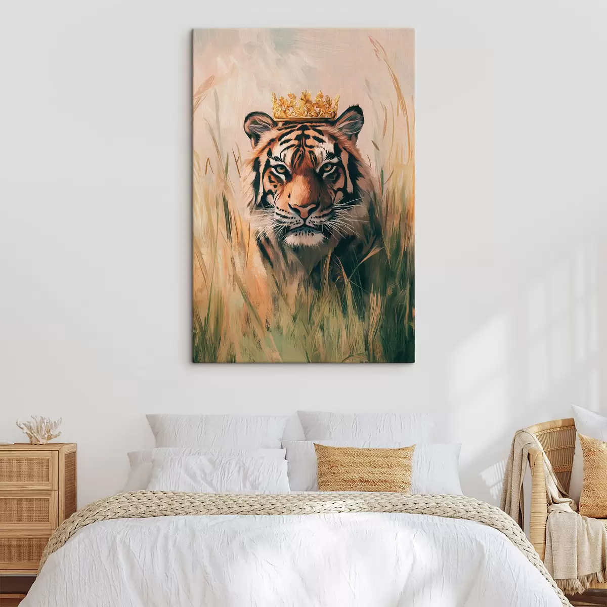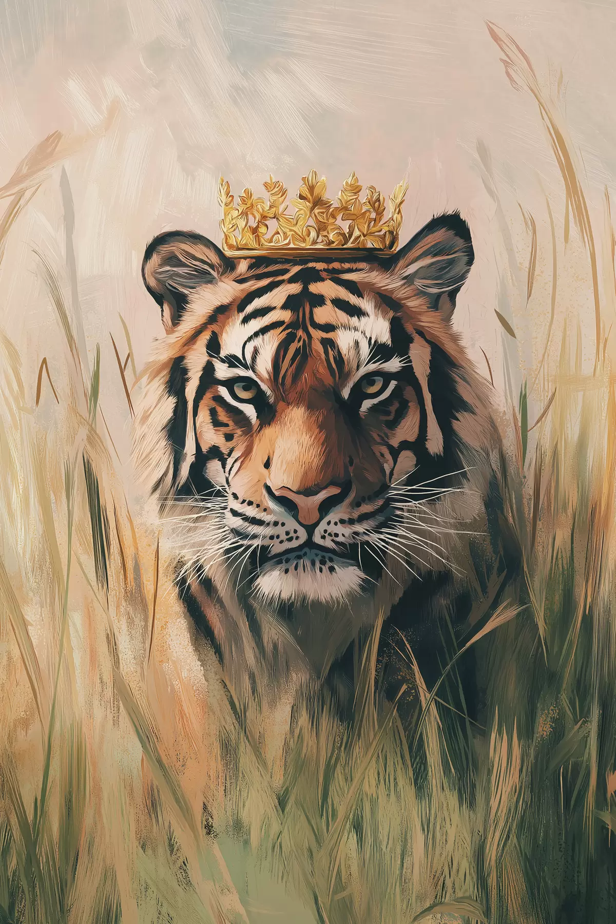Glezna Tīģeris pļavā ar zāli, kronis, akrila zīmējums Nr s42783