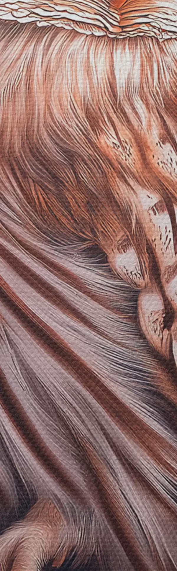 Lai izstieptu audeklu uz nestuvēm, nebojājot attēlu, mēs izmantojam spoguļattēlu.