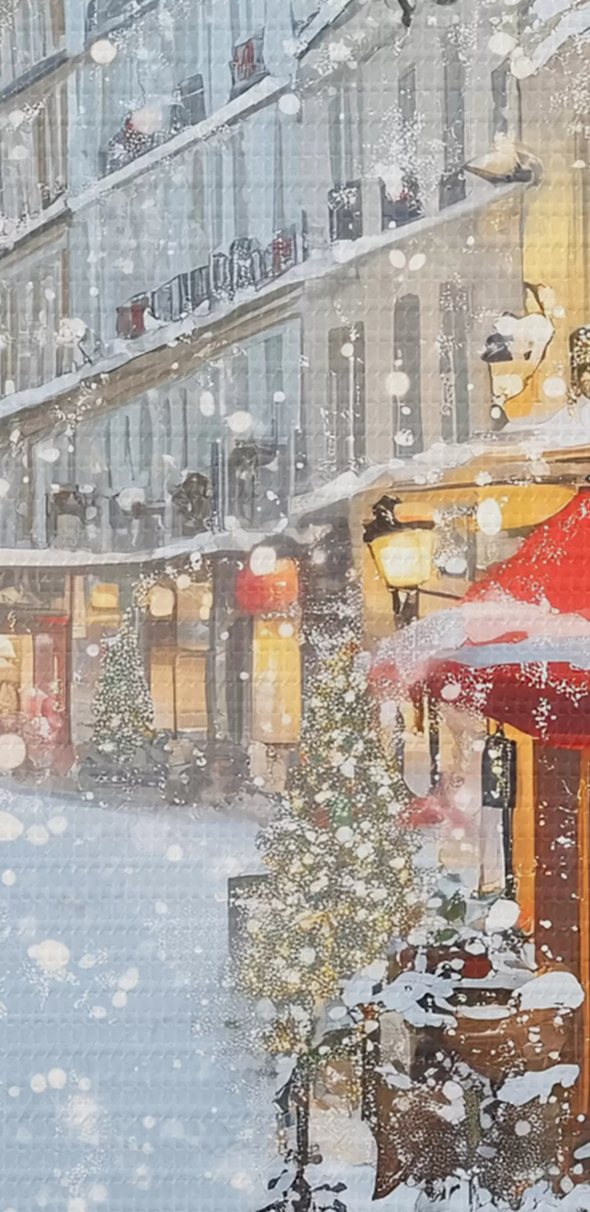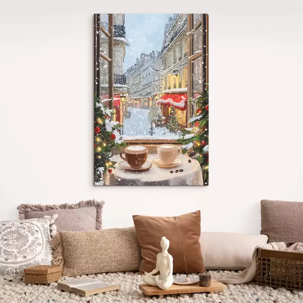 Glezna Mājīga ziemas kafejnīca, kafijas tases, akrila stils, vecpilsētas arhitektūra Nr s42795