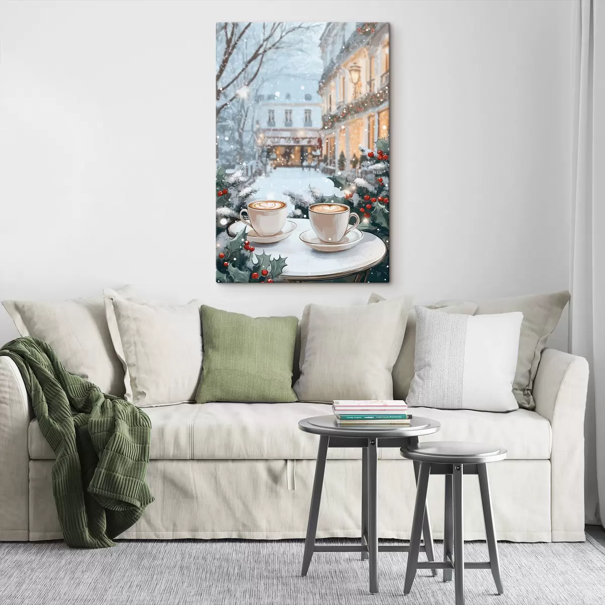 Glezna Kafijas tases mājīgajā kafejnīcā, ziemas estētika, boho stils Nr s42797