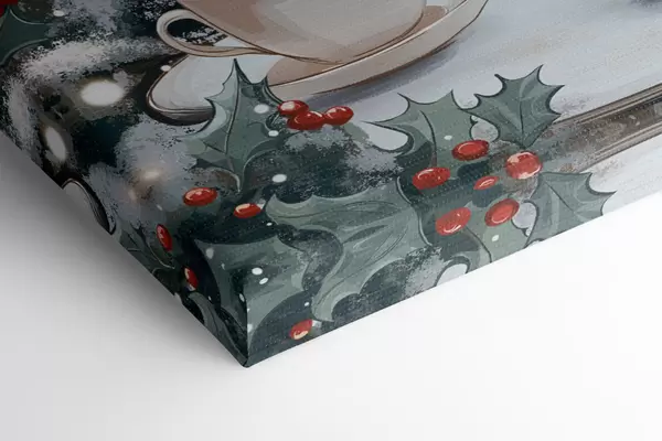 Glezna Kafijas tases mājīgajā kafejnīcā, ziemas estētika, boho stils Nr s42797