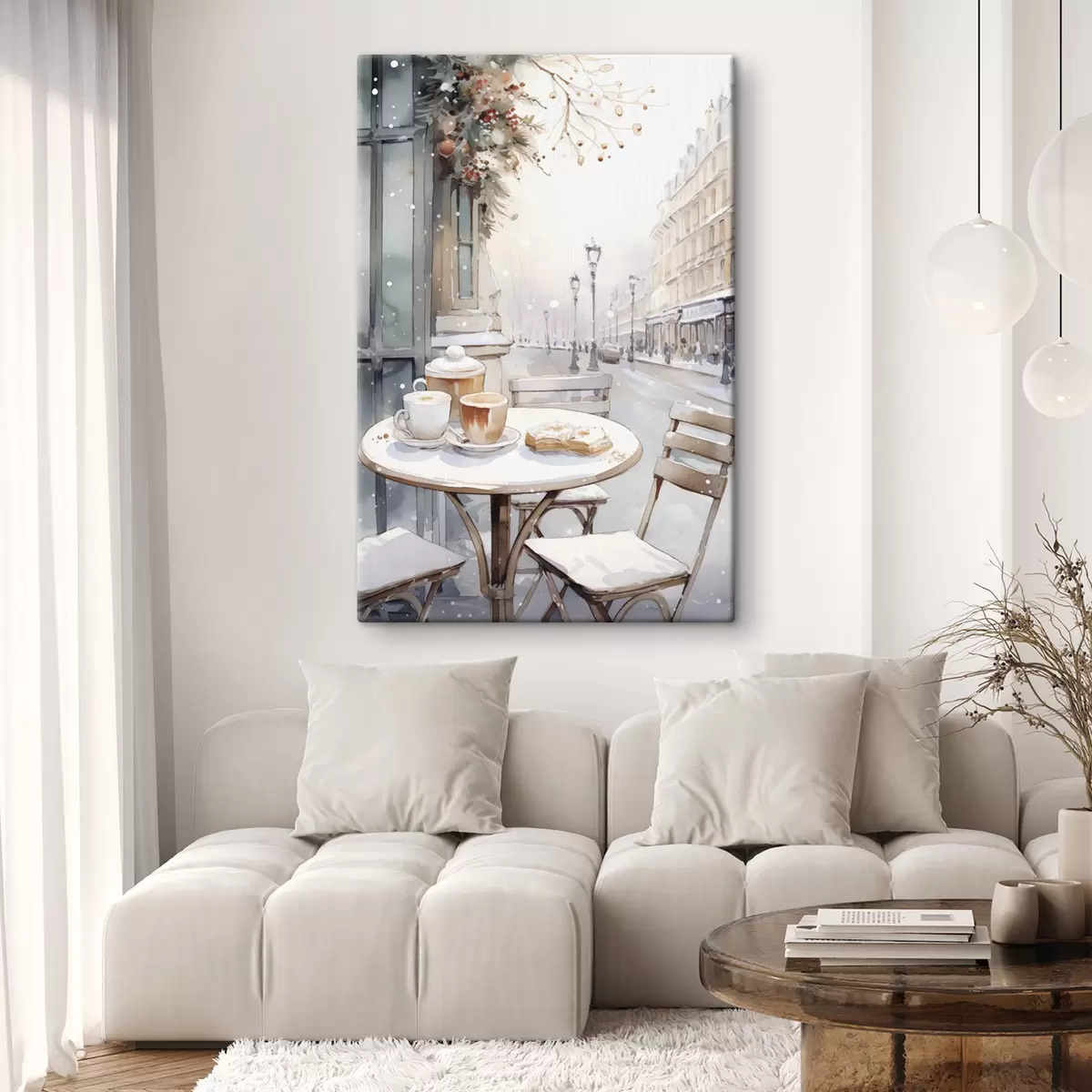 Glezna Estētiska ielas kafejnīca, Francija, svaiga maiznīca, akvareļa stila zīmējums Nr s42798