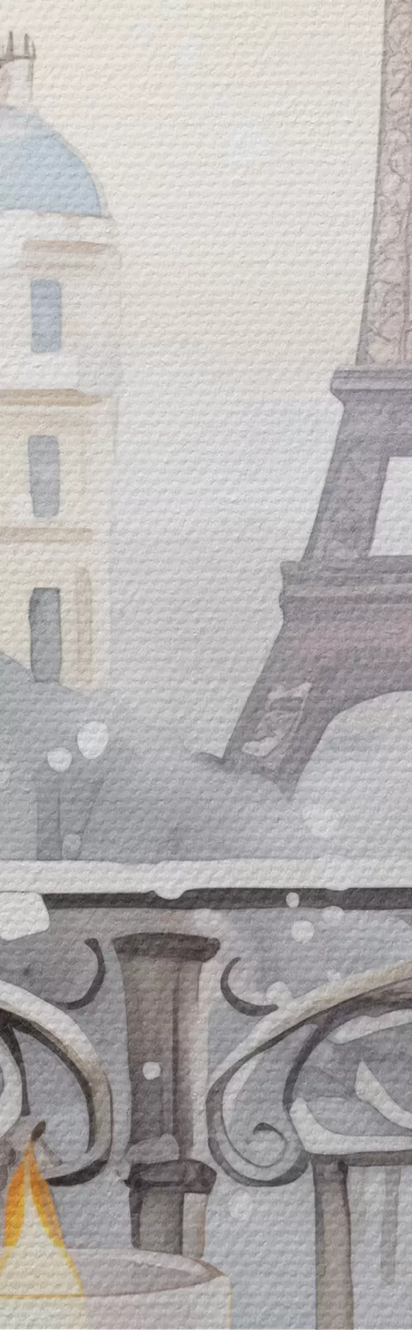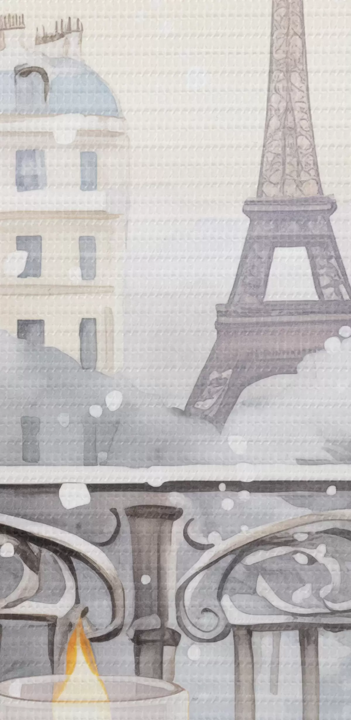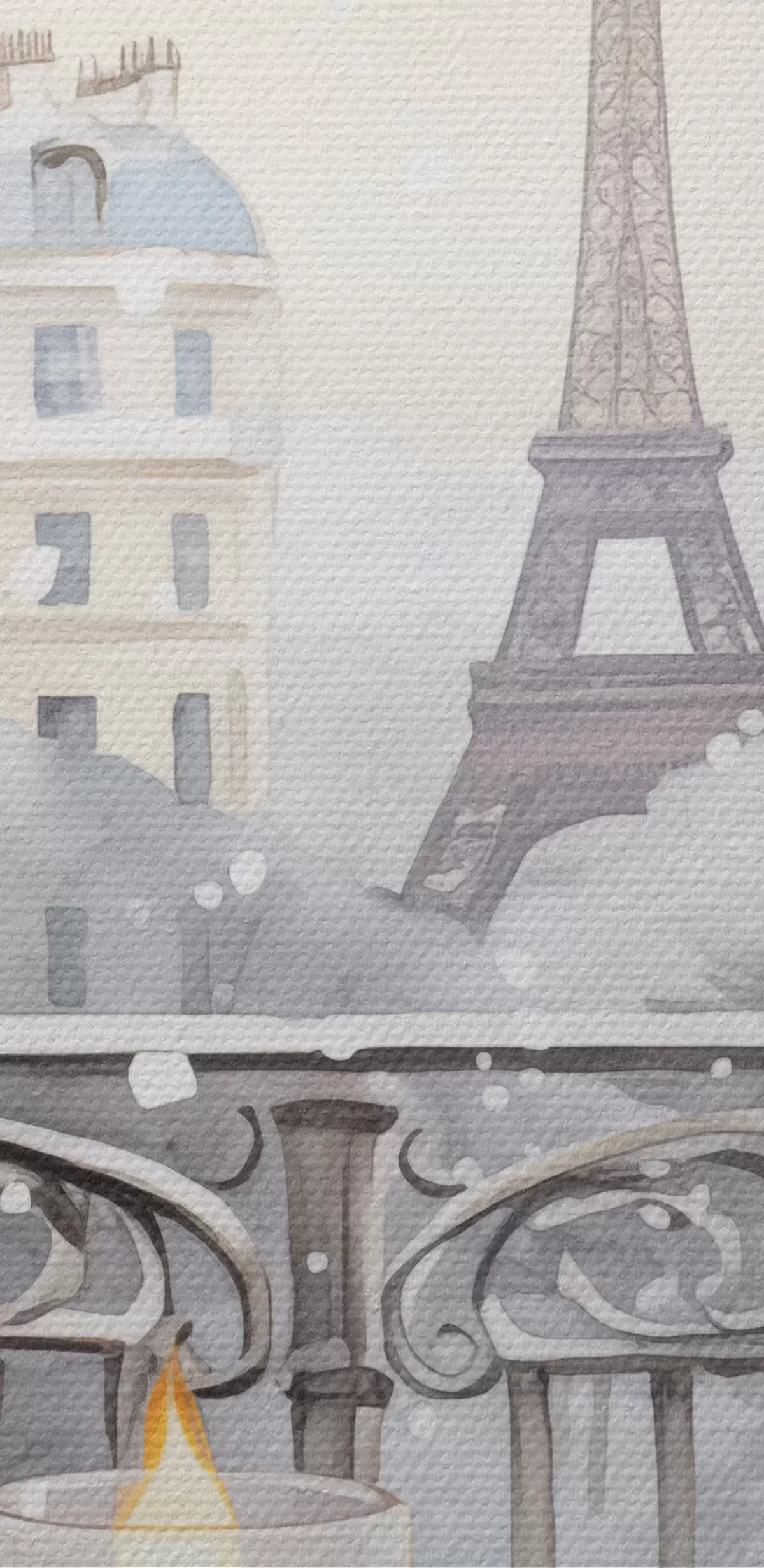 Glezna Skaista kafejnīca Parīzē, tējas tasītes, romantisks skats, ziema, akvareļu stils s42799