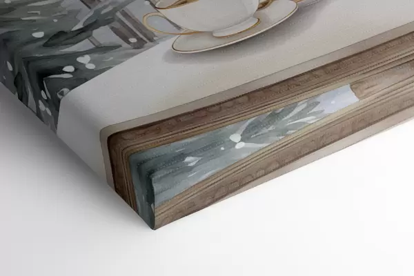 Glezna Skaista kafejnīca Parīzē, tējas tasītes, romantisks skats, ziema, akvareļu stils s42799