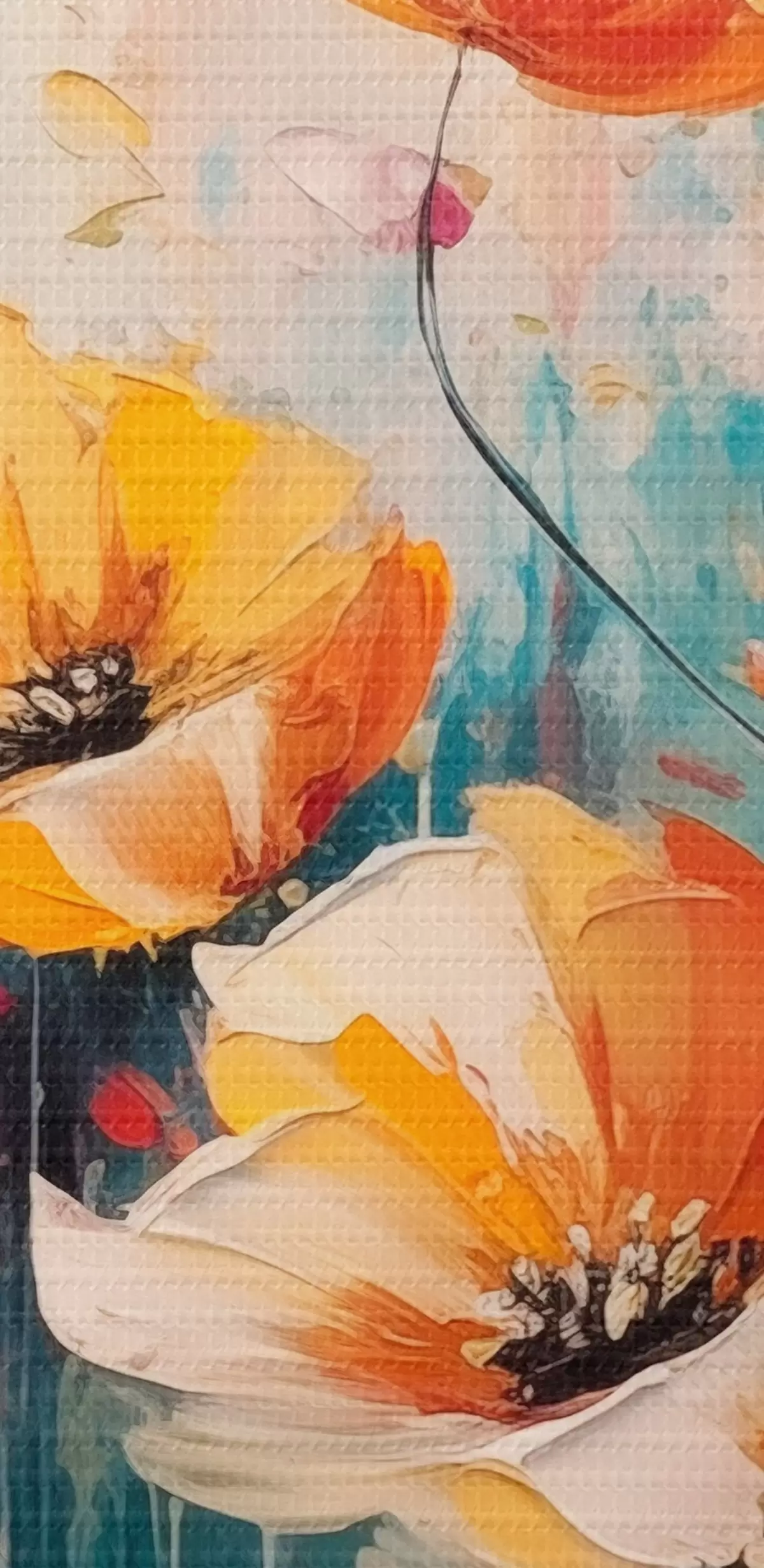 Smalkais diegu pinums uz šī audekla atgādina profesionālu mākslinieku audeklu virsmu.