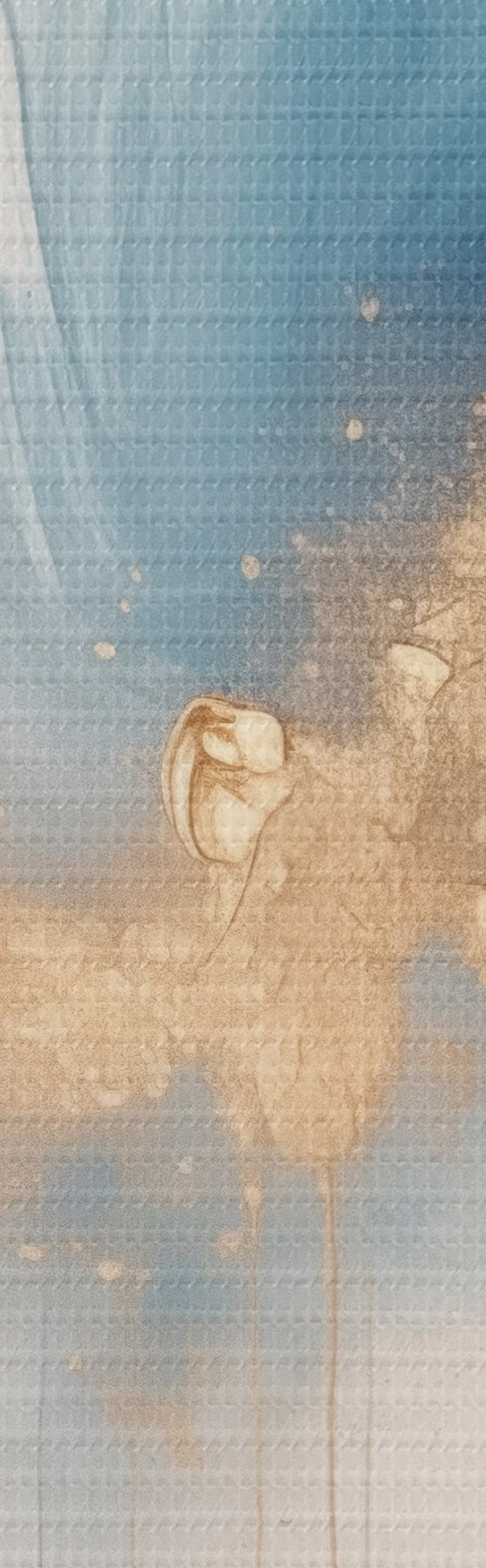 Smalkais diegu pinums uz šī audekla atgādina profesionālu mākslinieku audeklu virsmu.