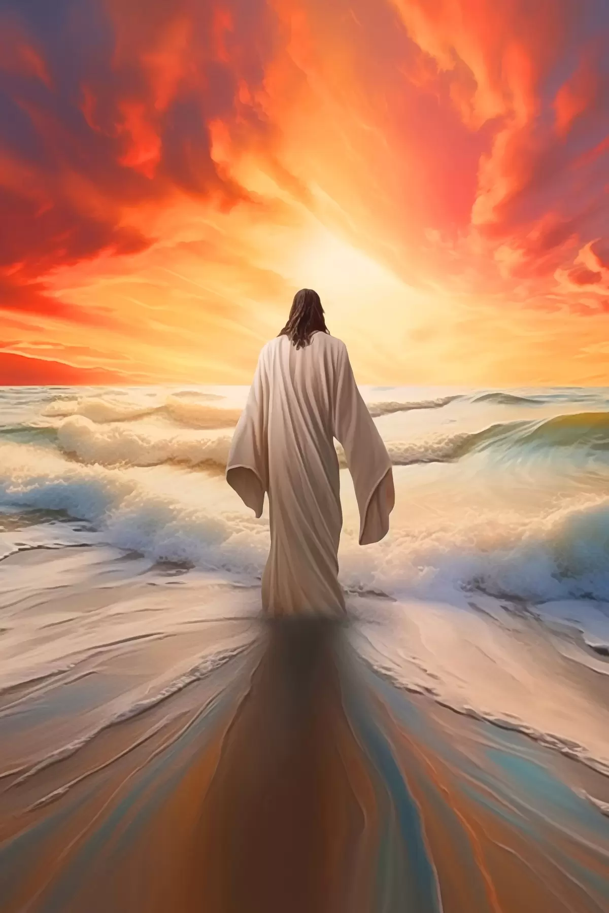 Glezna Cilvēks pie ūdens uz saulrieta fona Nr s42824
