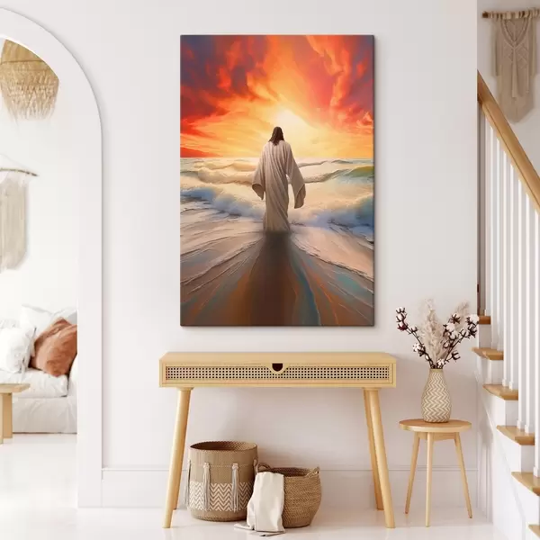 Glezna Cilvēks pie ūdens uz saulrieta fona s42824