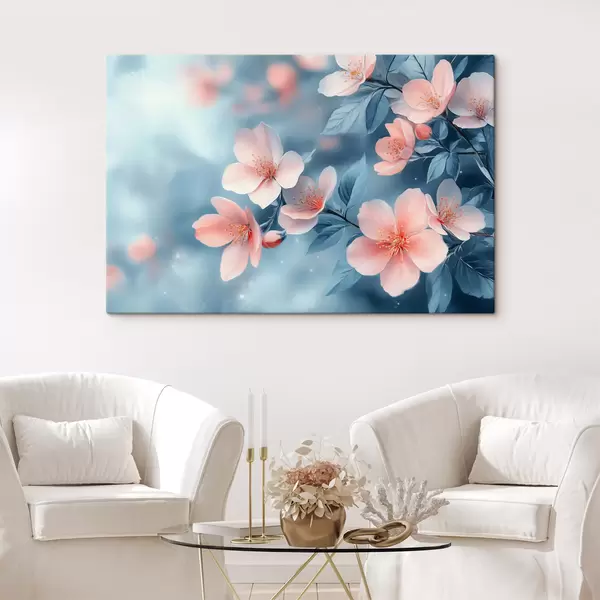 Glezna Rozā ziedi uz zila fona s42846
