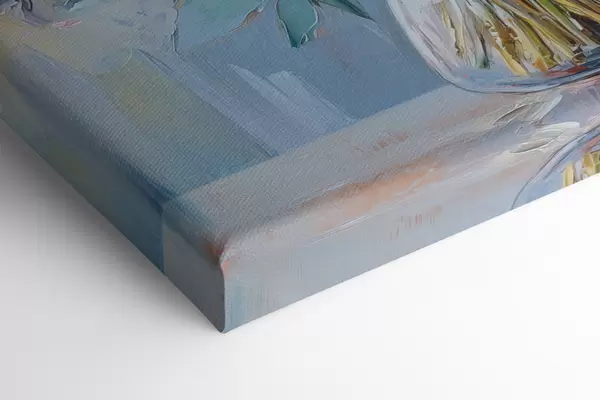 Glezna ir iekārtojama uzreiz pēc tās saņemšanas. Glezna tiks izstiepta uz 2 cm platām koka nestuvēm.
