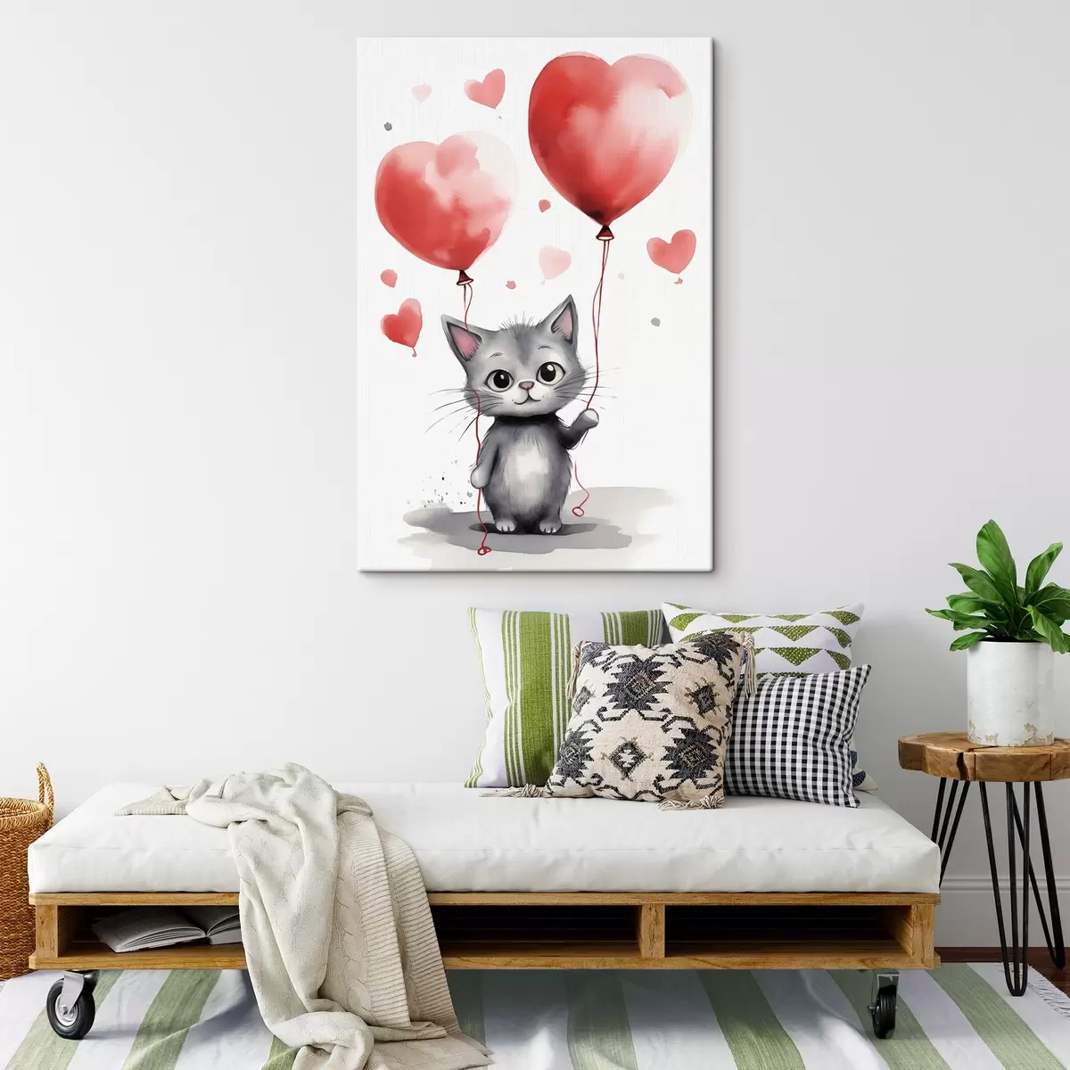 Glezna Gudrs kaķēns ar baloniem sirds formā s42871