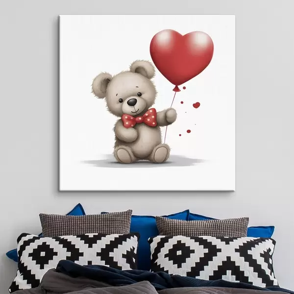Glezna Gudrs lācis ar sarkanu sirds balonu Nr s42879