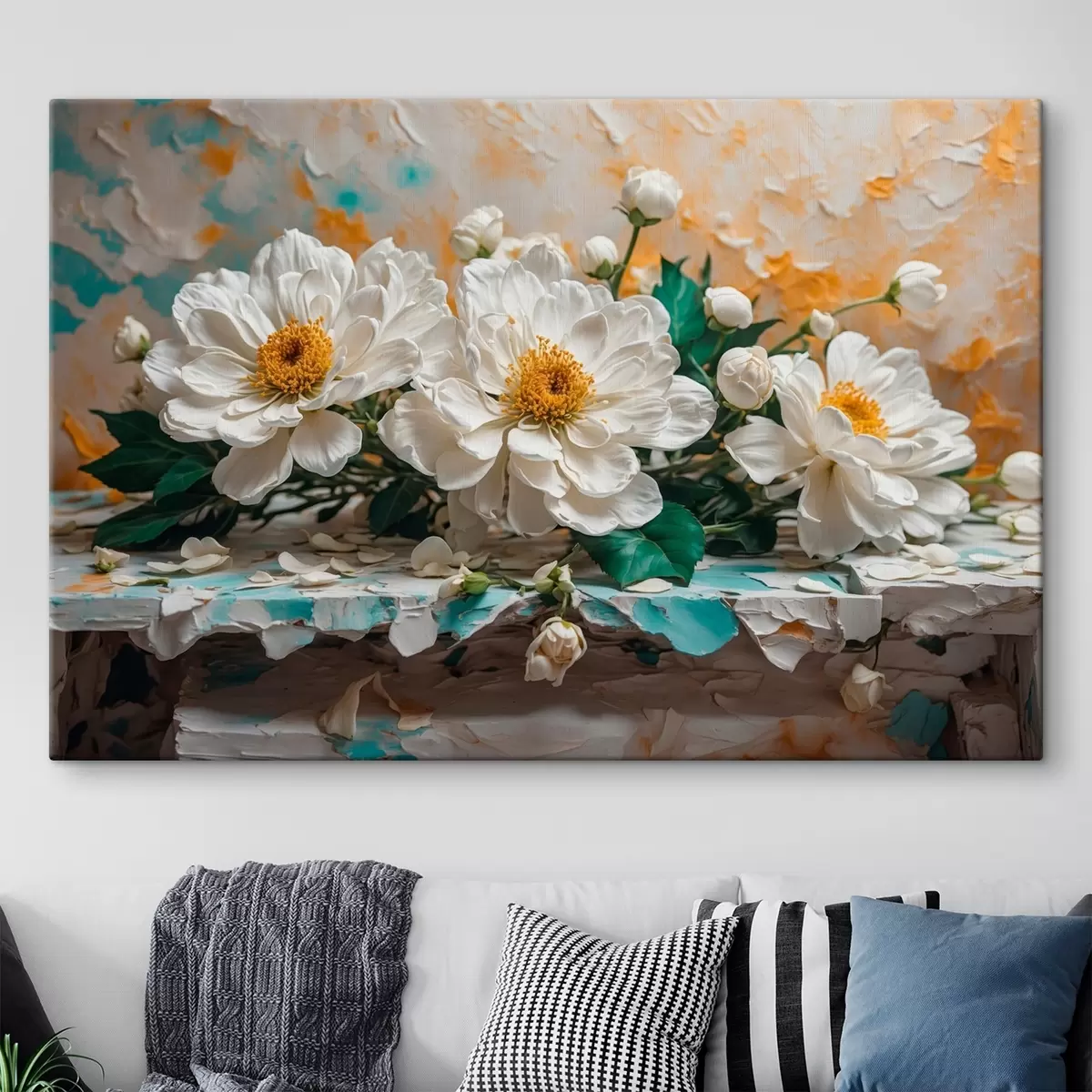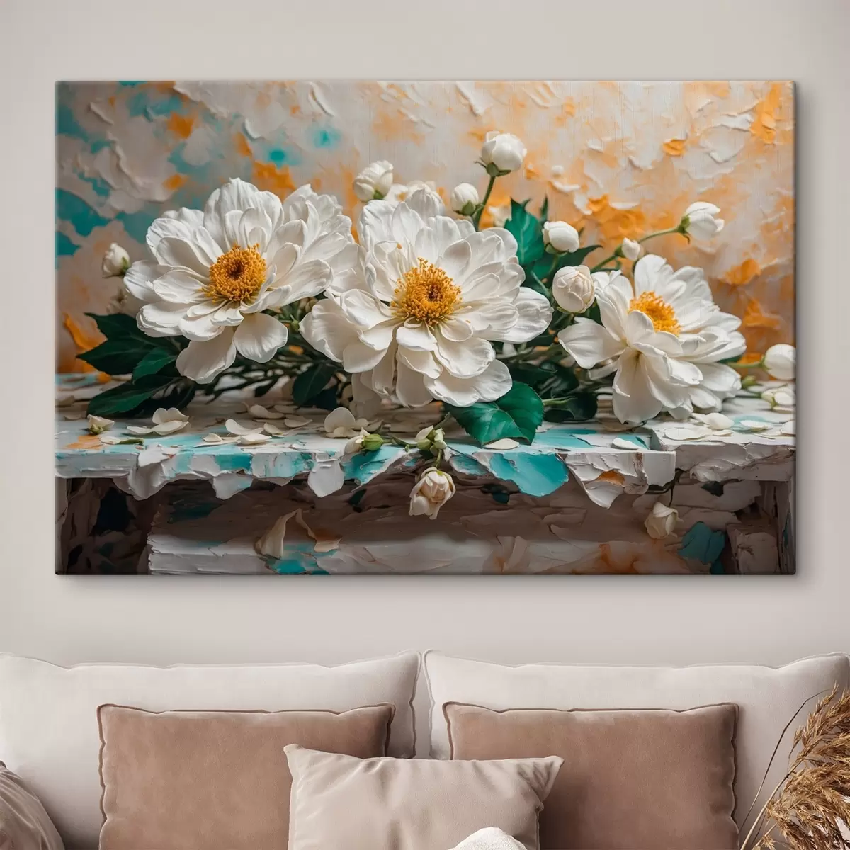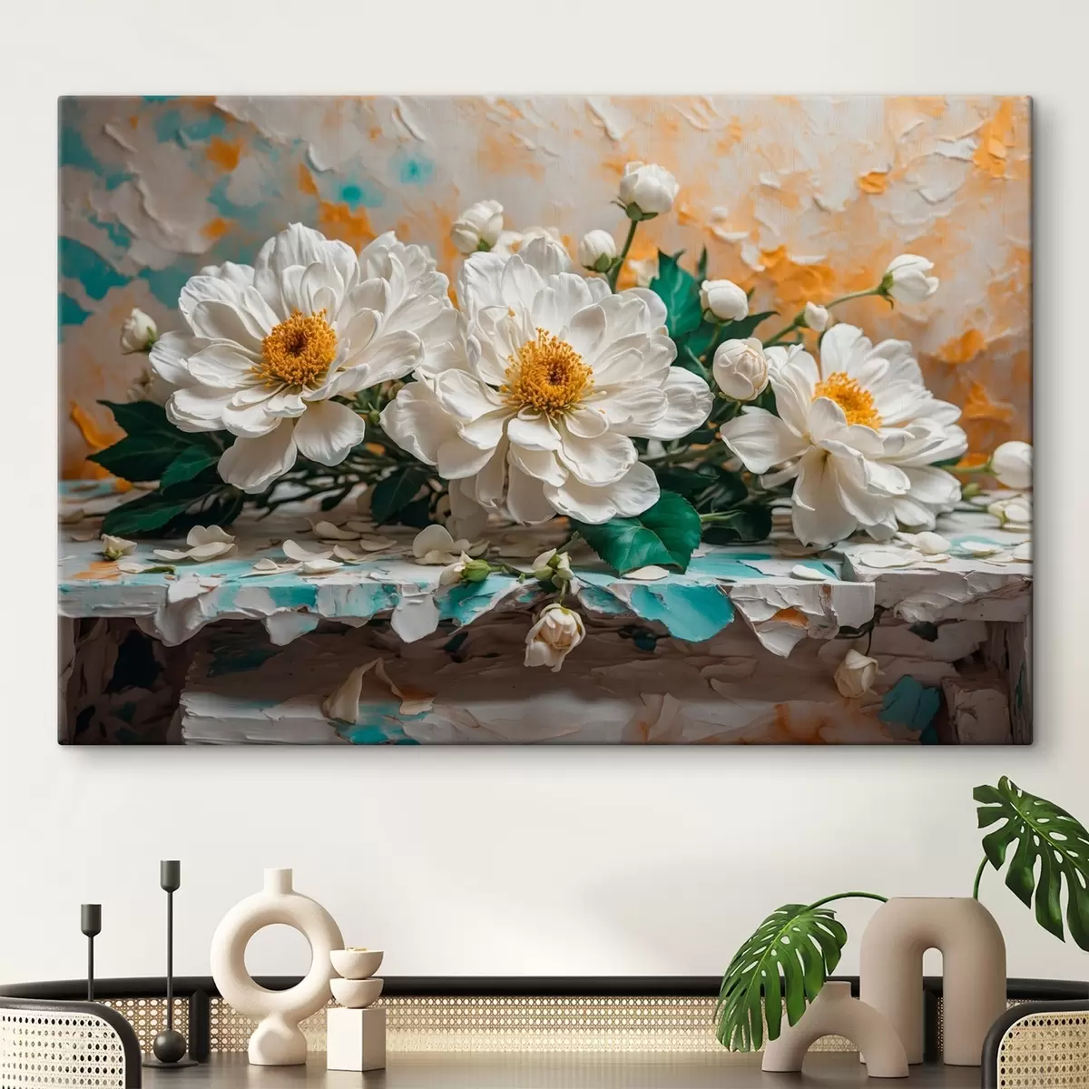Glezna Balti ziedi uz galda uz abstrakta fona Nr s42924