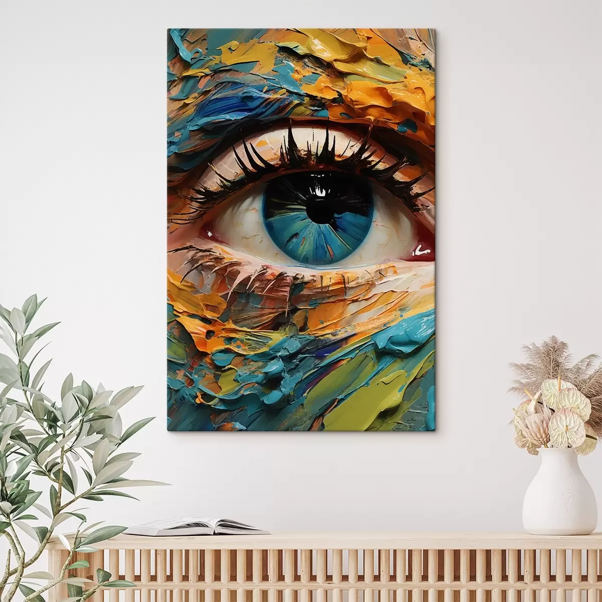 Glezna Abstrakts acs portrets spilgtās krāsās ar fakturētas glezniecības efektu s42938