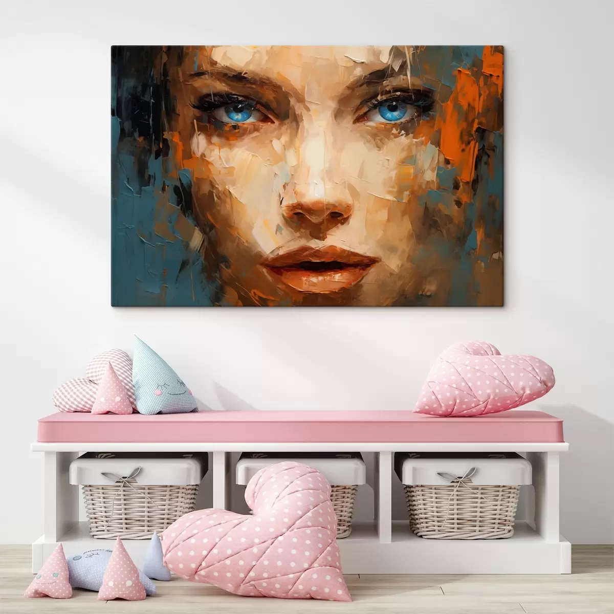 Glezna Sievietes abstraktais portrets ar drosmīgiem triepieniem un pārsteidzošām zilām acīm Nr s42939