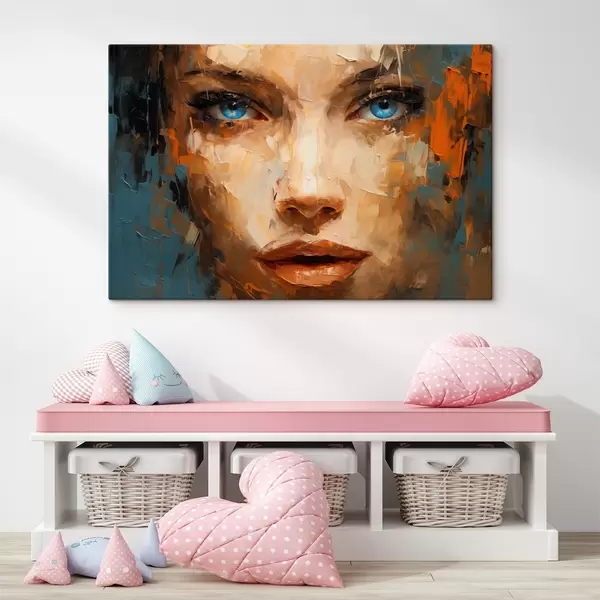 Glezna Sievietes abstraktais portrets ar drosmīgiem triepieniem un pārsteidzošām zilām acīm s42939
