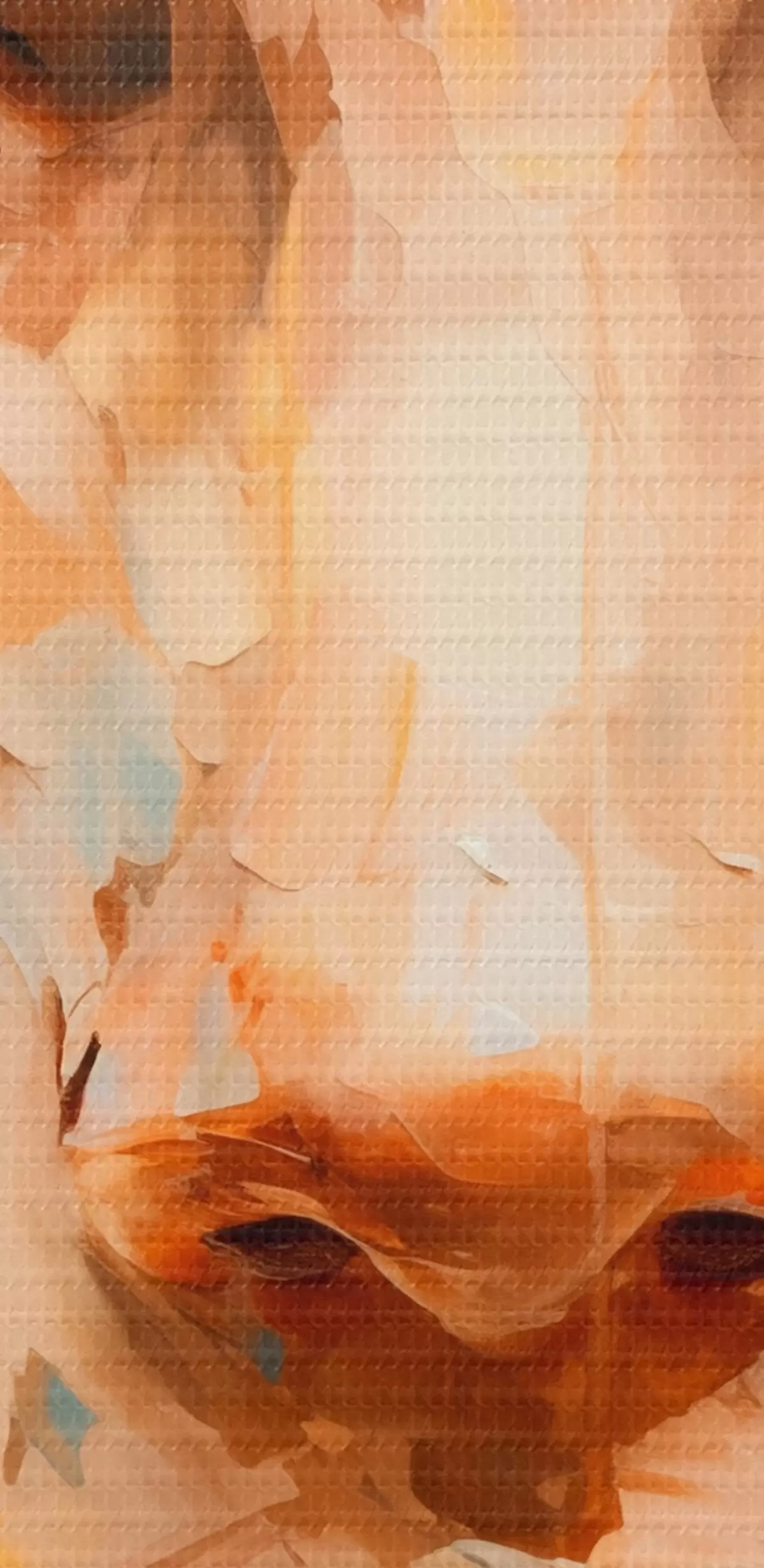 Smalkais diegu pinums uz šī audekla atgādina profesionālu mākslinieku audeklu virsmu.