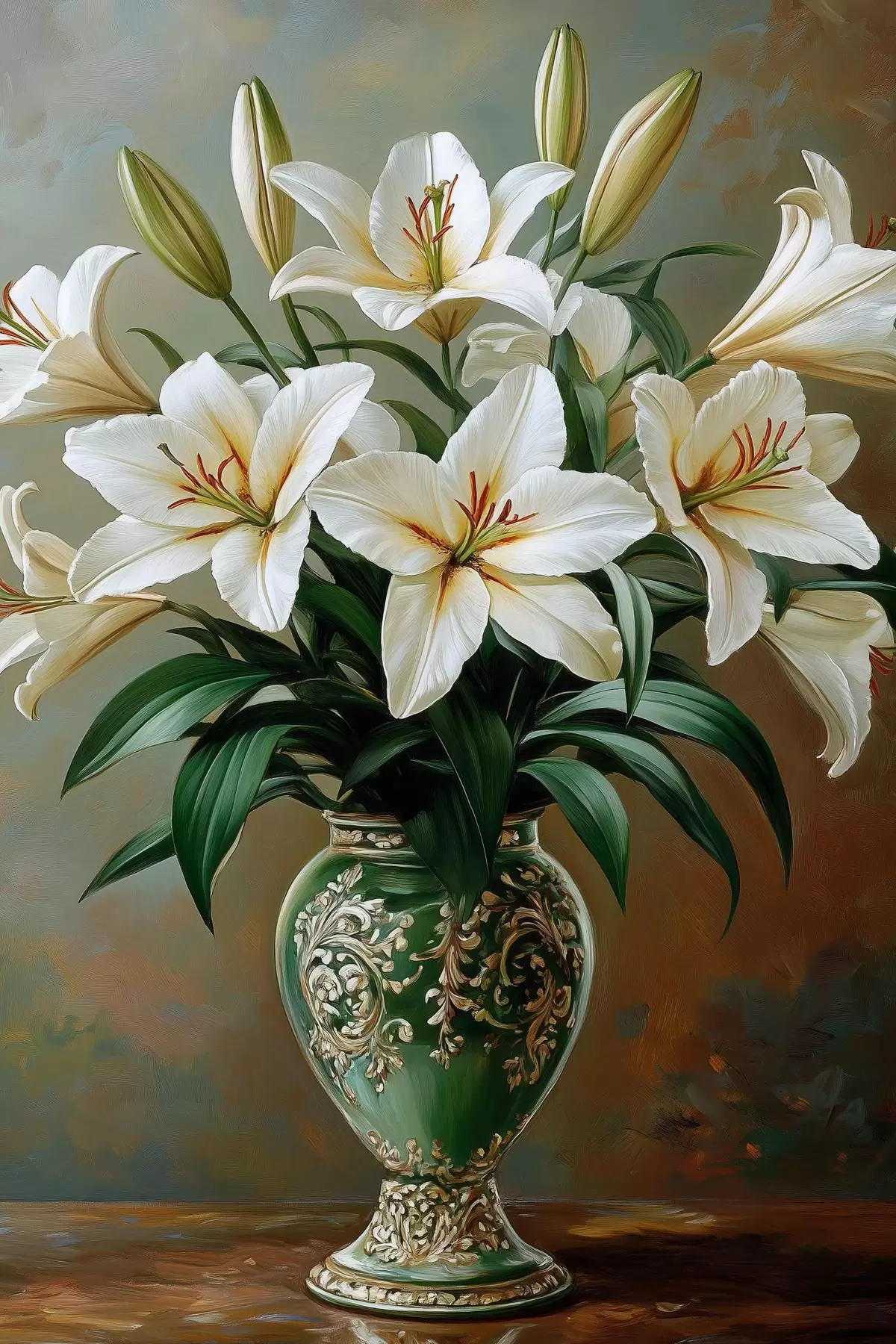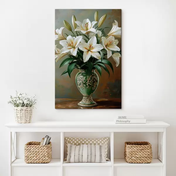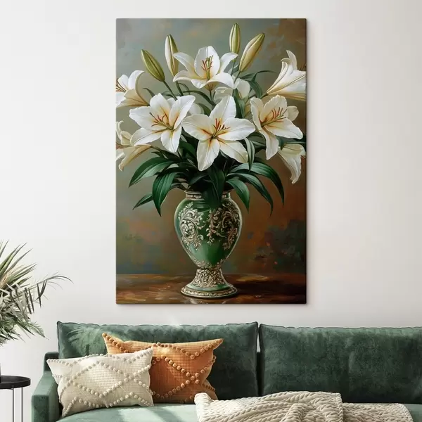Glezna Baltu liliju pušķis vāzē Nr s42975