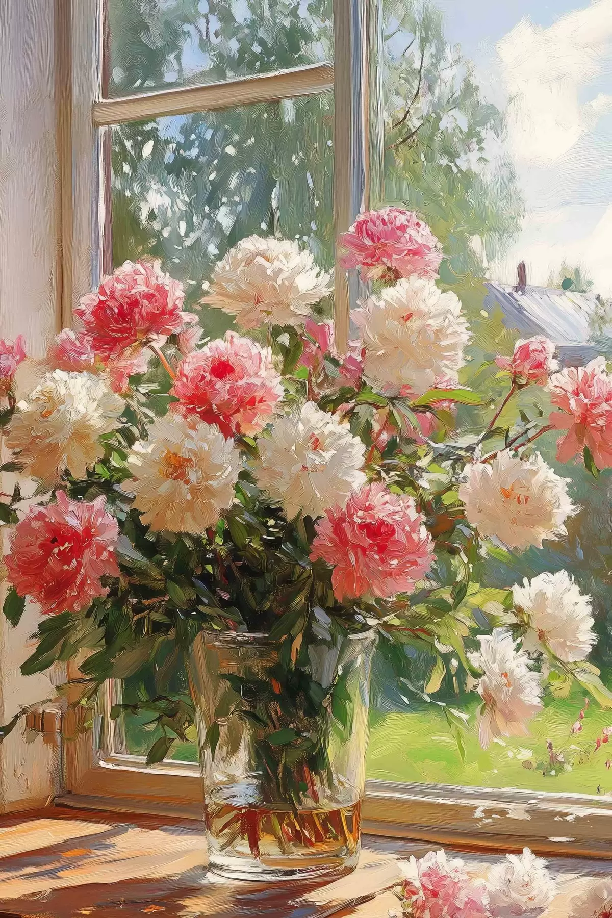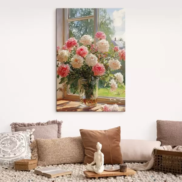 Glezna Pušķis uz loga eļļas krāsas stilā s42978