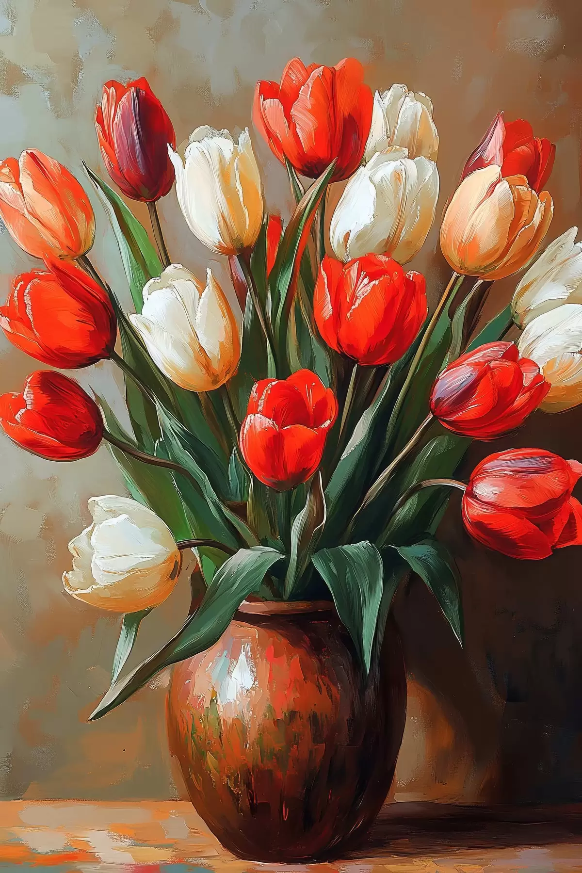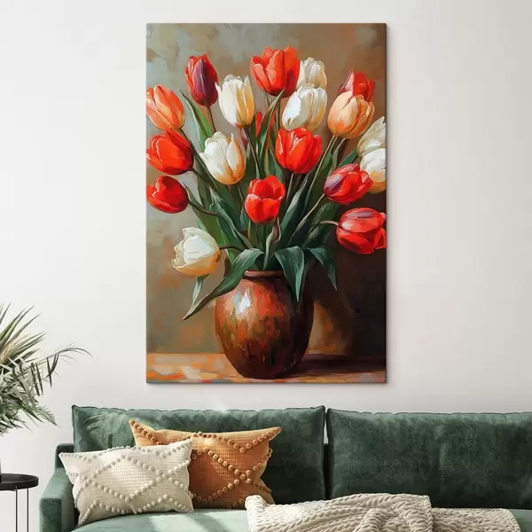 Glezna Sarkano un balto tulpju pušķis s42981