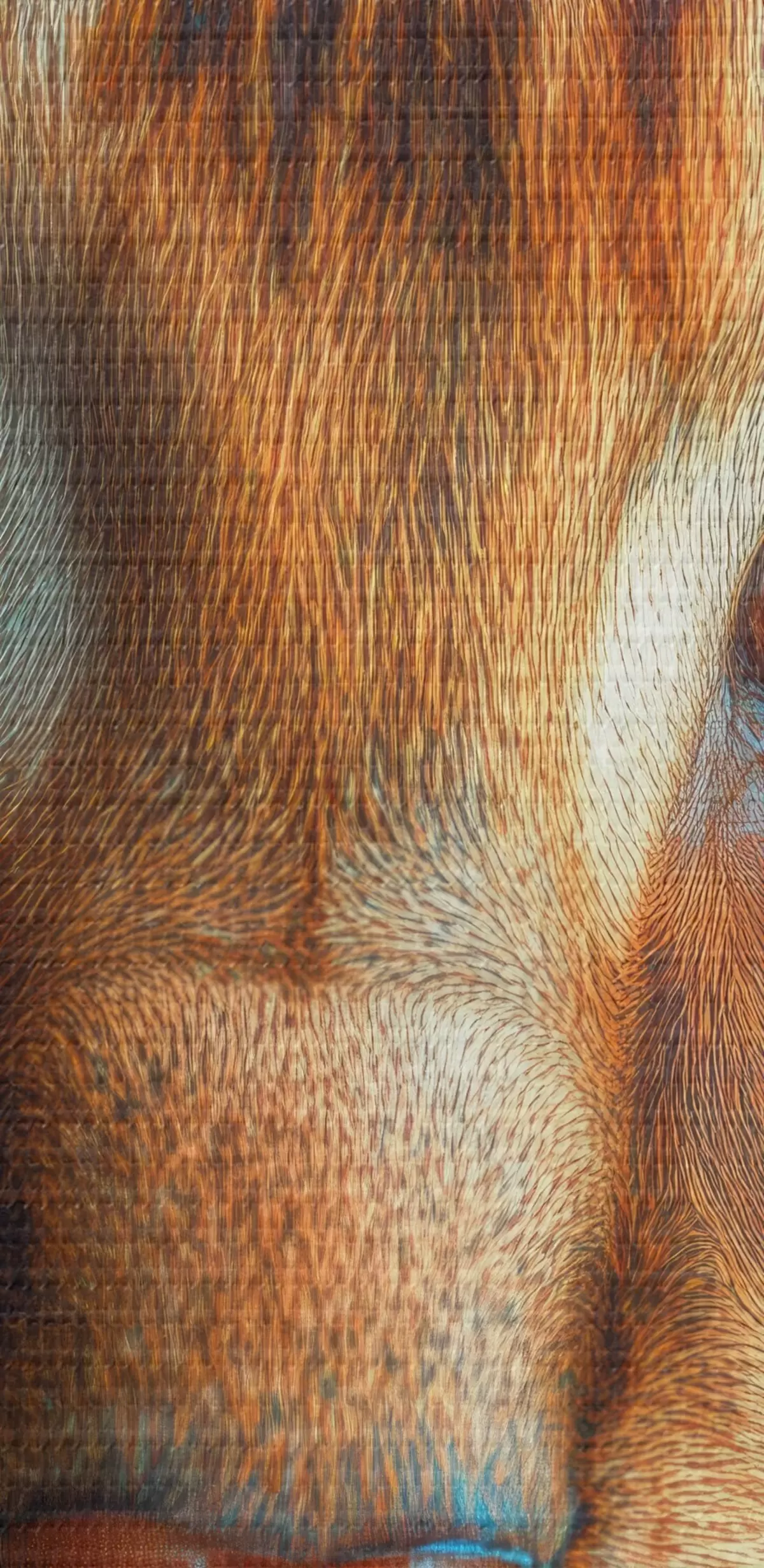 Smalkais diegu pinums uz šī audekla atgādina profesionālu mākslinieku audeklu virsmu.