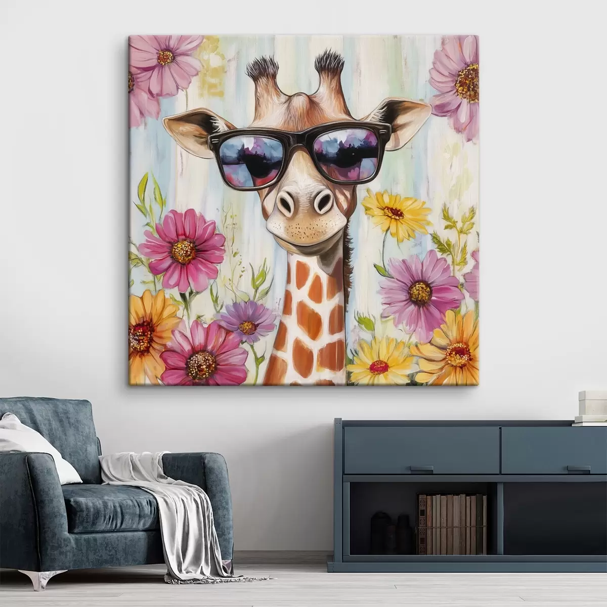 Glezna Žirafe ar brillēm pie ziediem s42991