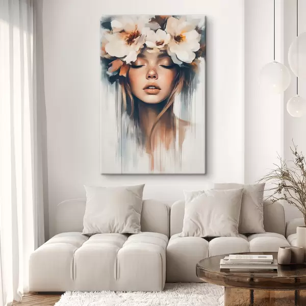 Glezna Sievietes portrets ar ziediem matos Nr s43001
