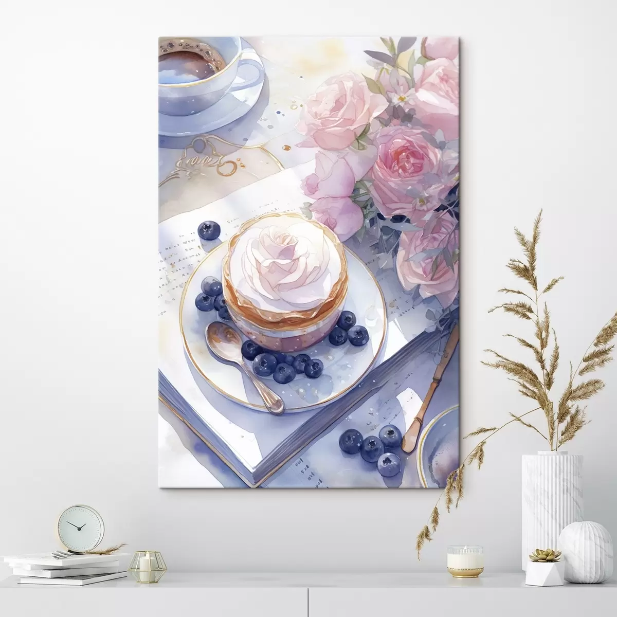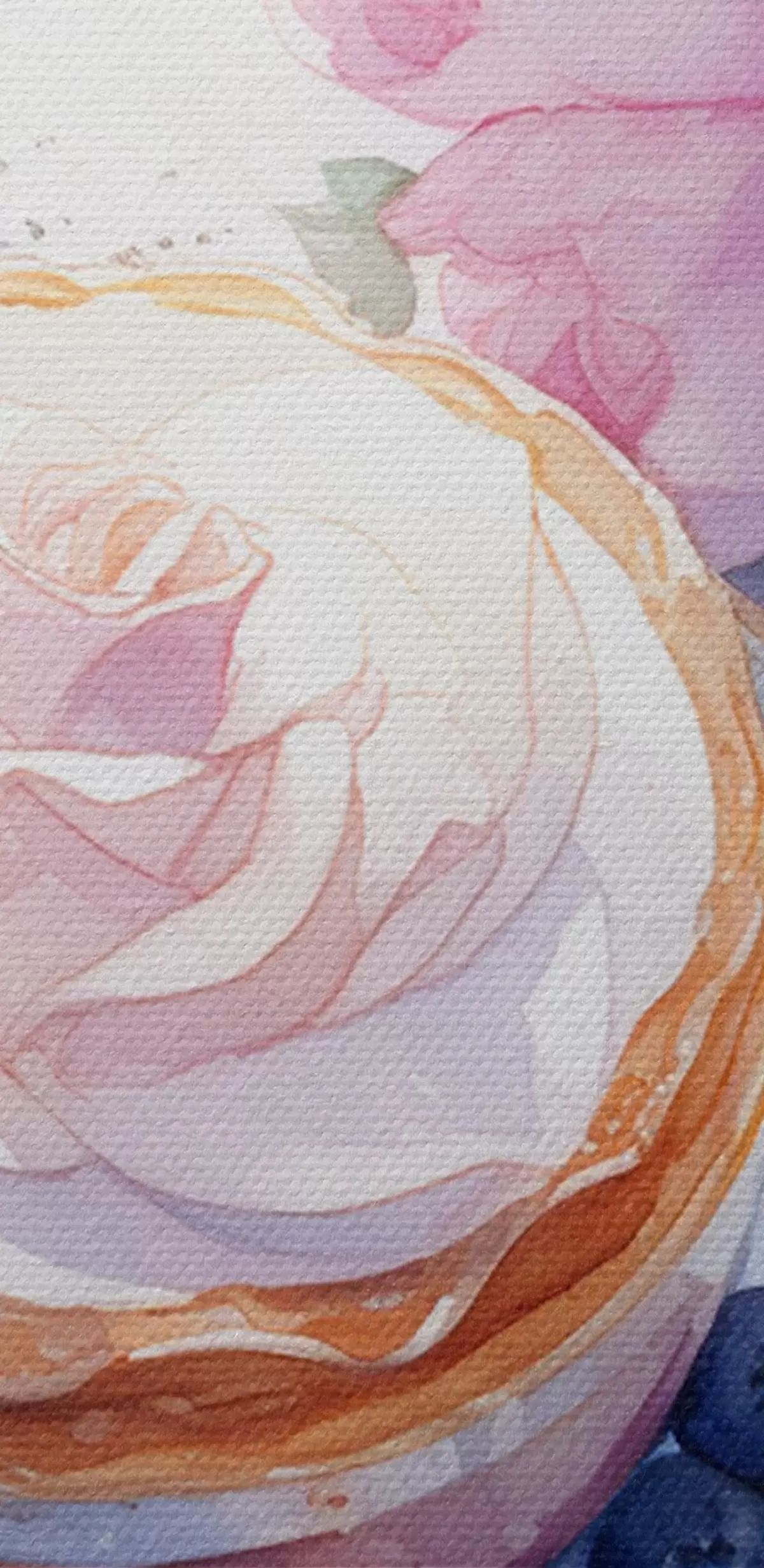 Glezna Melleņu cupcake, boho stils, akvarelis, rozā rozes, poētisks Nr s43053