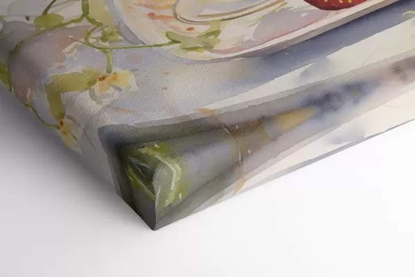 Glezna Akvareļa stila zīmējums ar šampanieša glāzēm, ziediem un zemenēm  s43056