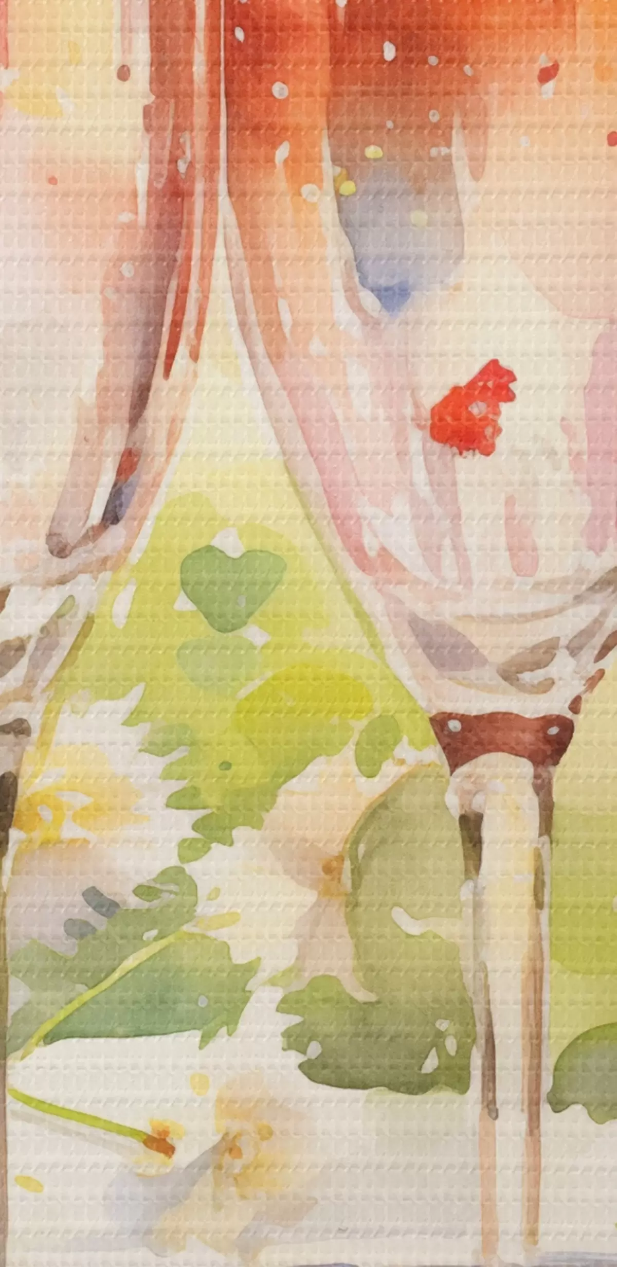 Smalkais diegu pinums uz šī audekla atgādina profesionālu mākslinieku audeklu virsmu.