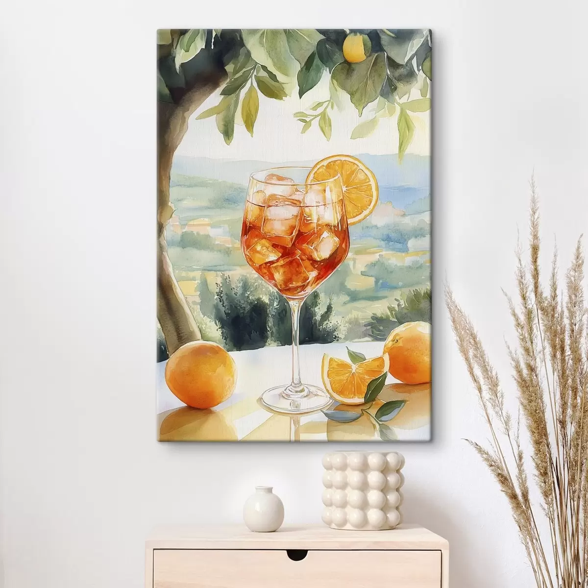 Glezna Vasaras kokteilis, Aperol Spritz, apelsīni, akvareļu stila zīmējums Nr s43058
