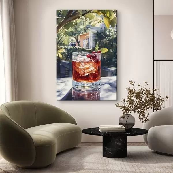 Glezna Kokteilis ar ogām, akvareļu stils, estētiska pilsēta, vasaras daba Nr s43059
