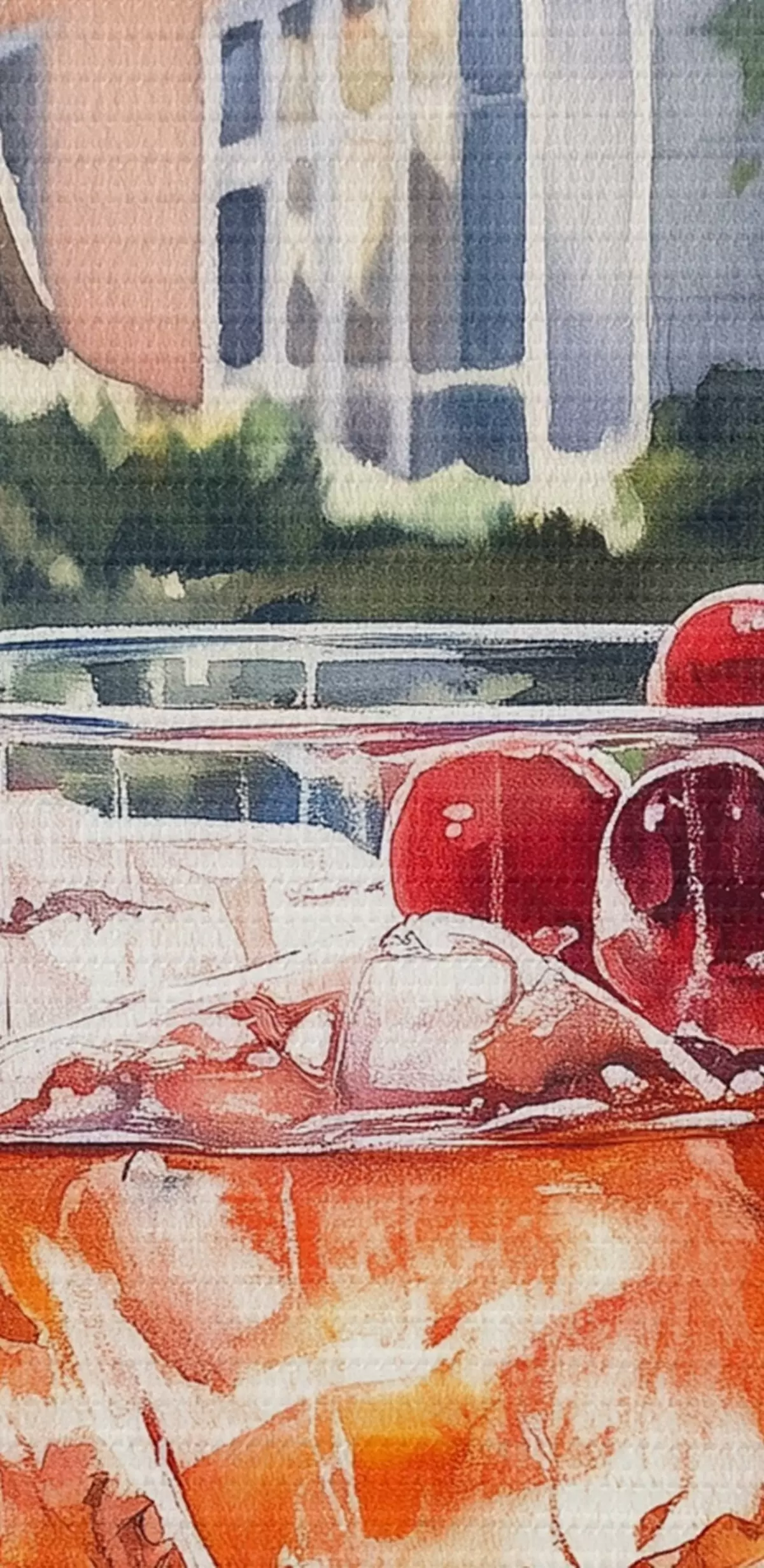 Glezna Kokteilis ar ogām, akvareļu stils, estētiska pilsēta, vasaras daba s43059