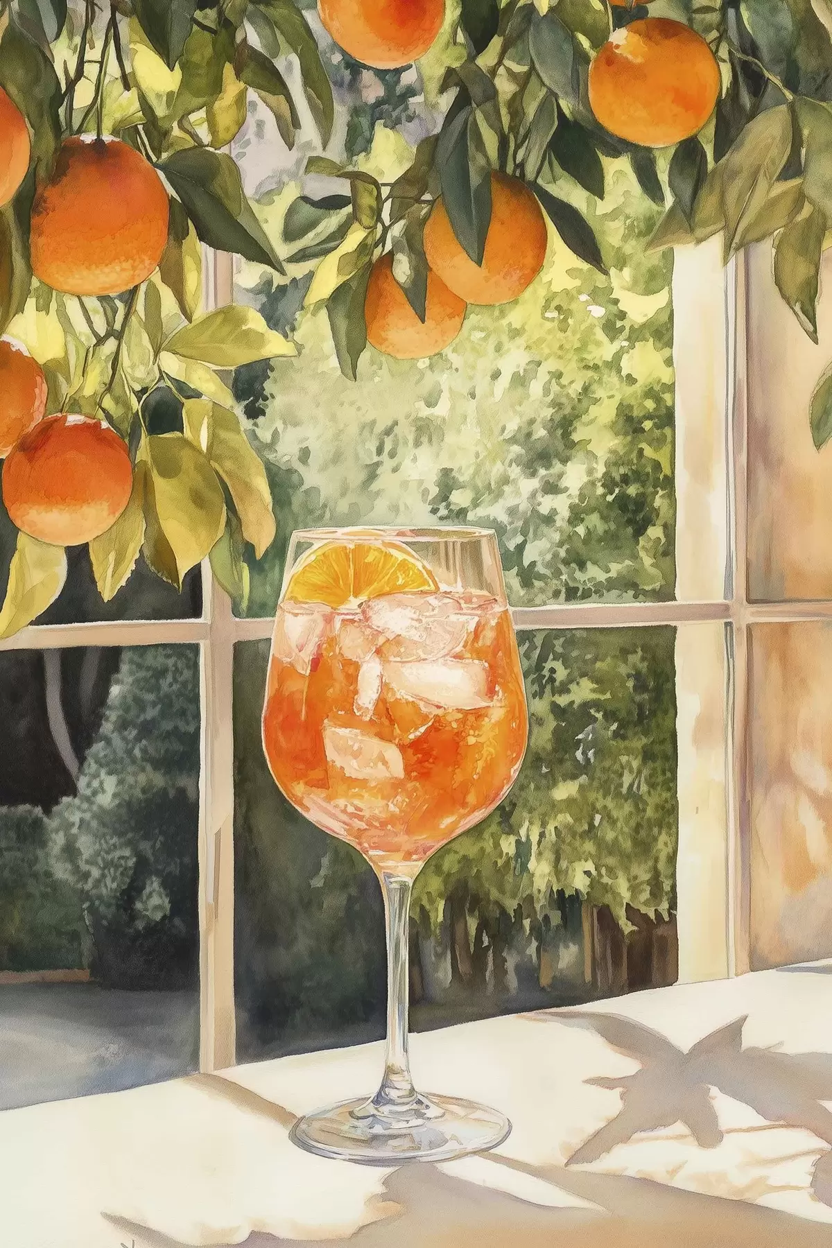 Glezna Garšīgs kokteilis ar apelsīniem, lauku stils, akvarelis, daba Nr s43060