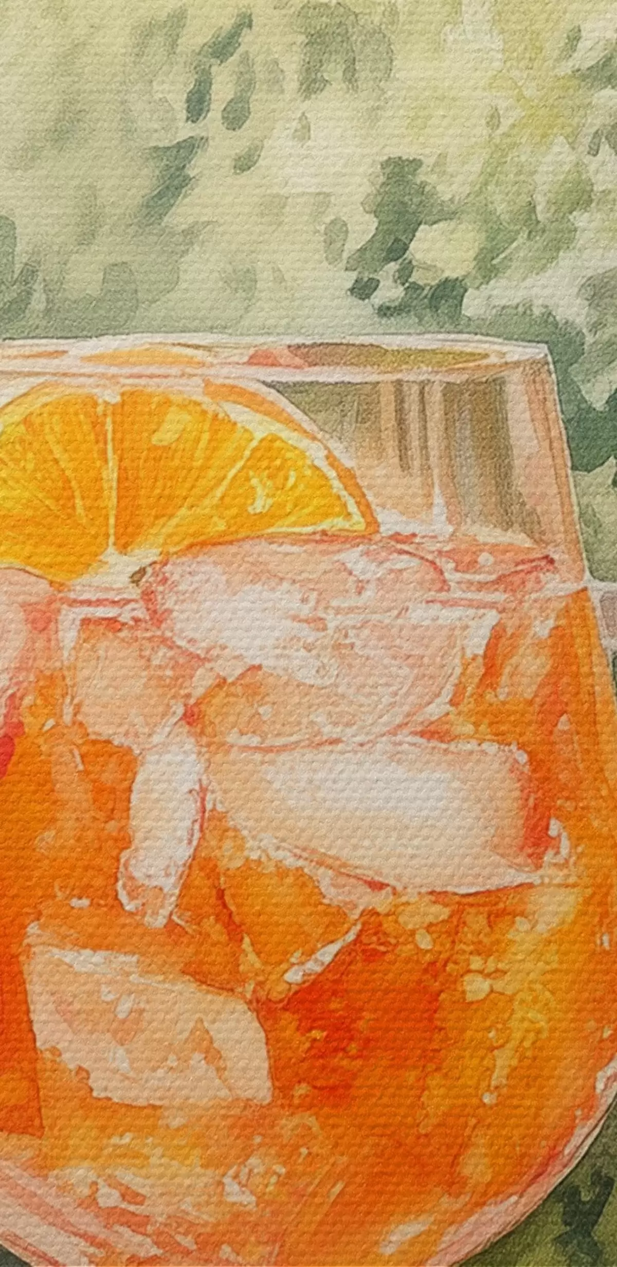 Glezna Garšīgs kokteilis ar apelsīniem, lauku stils, akvarelis, daba s43060